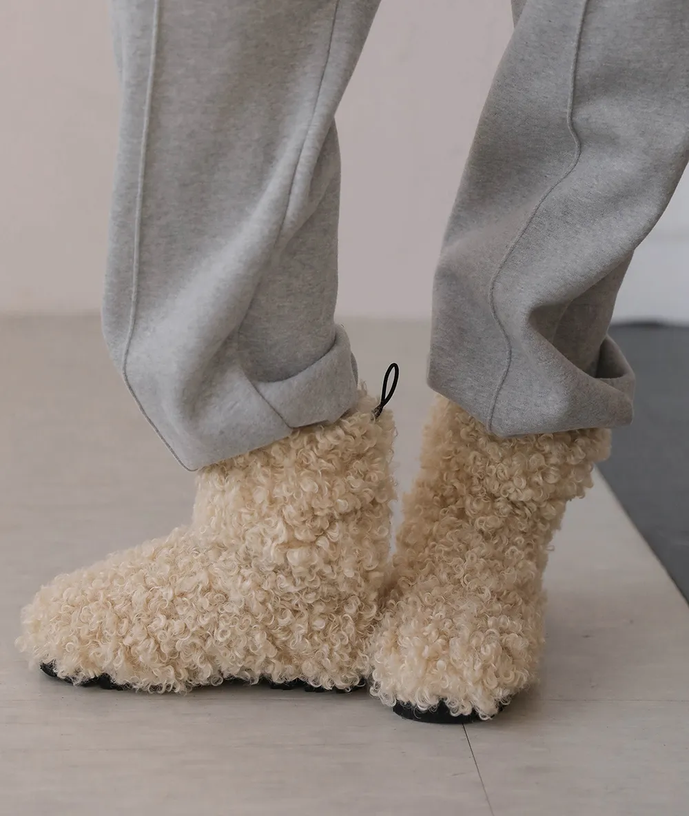 ボアブークレファー裏地ドローストリングアンクルブーツ・S1951559