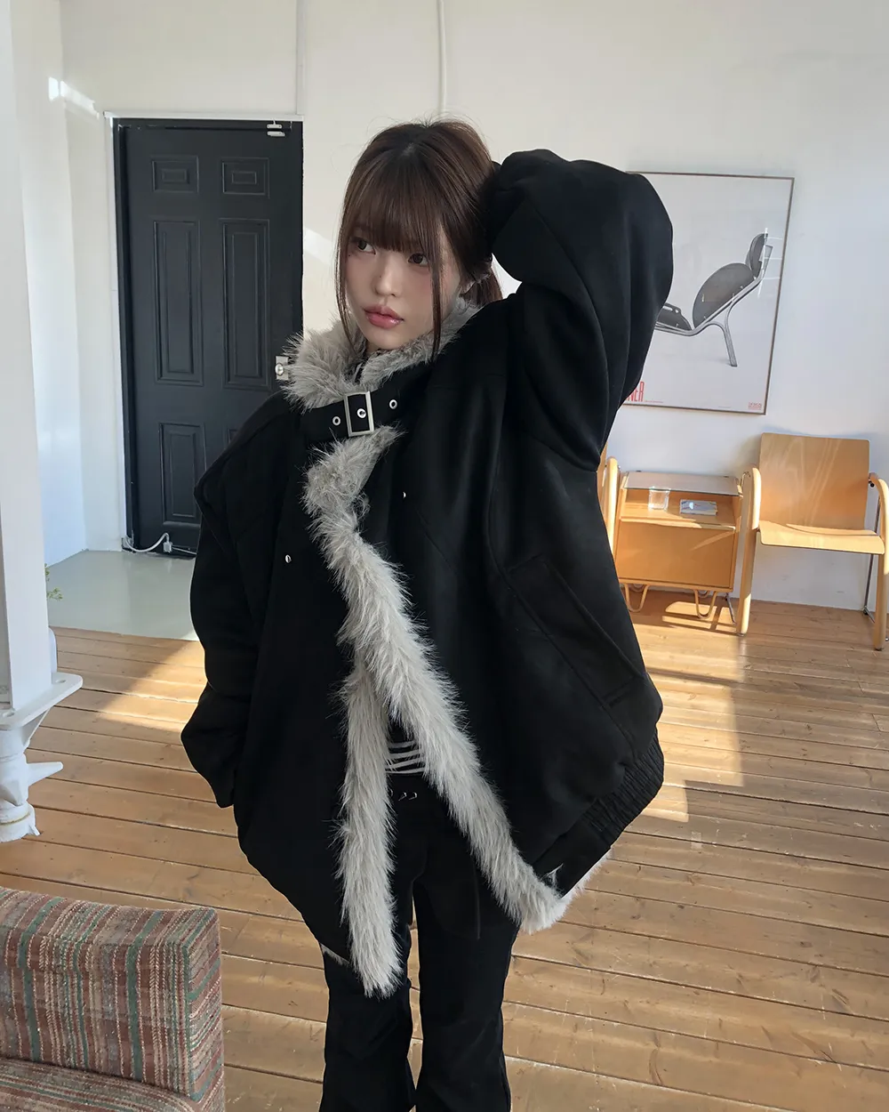 着用 : グレー / FREE,ブラック / FREE