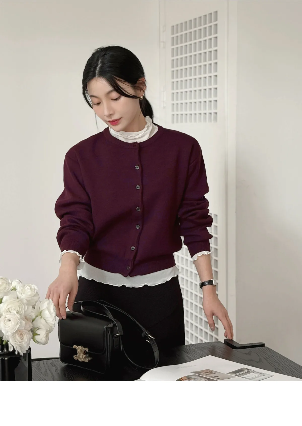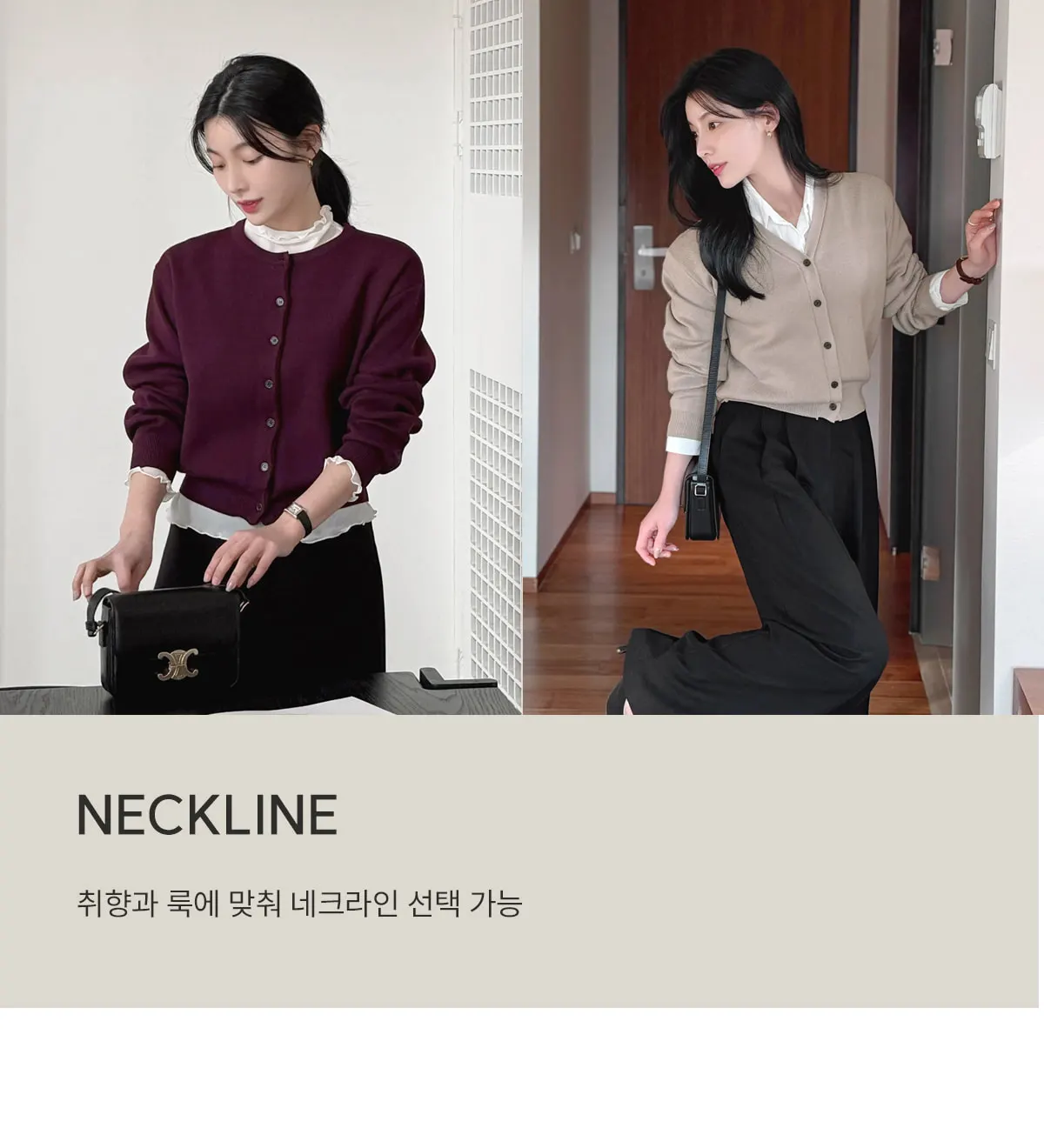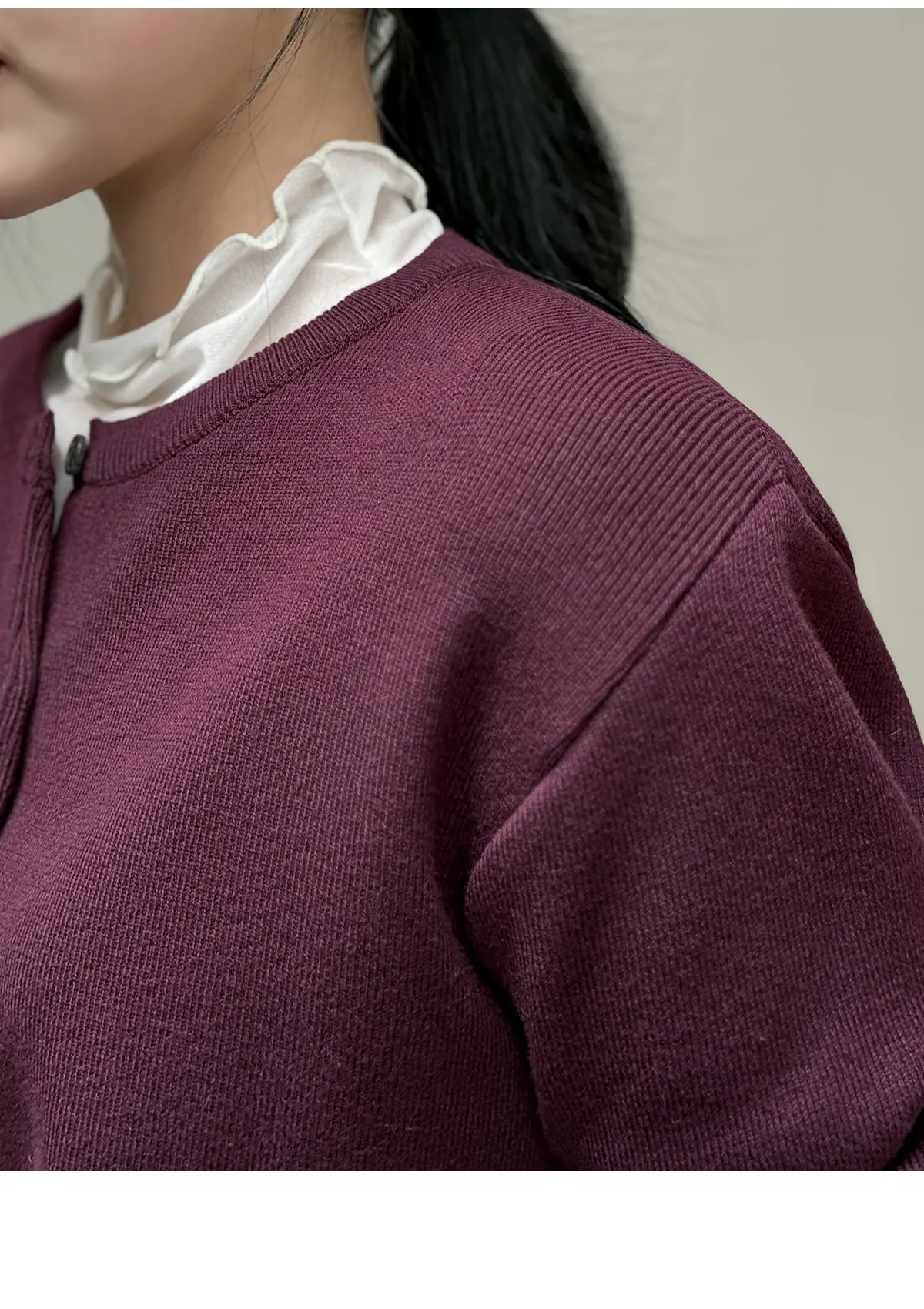着用 : ベージュ/Vネック / FREE,バーガンディ/ラウンドネック / FREE,オリーブ/ラウンドネック / FREE
