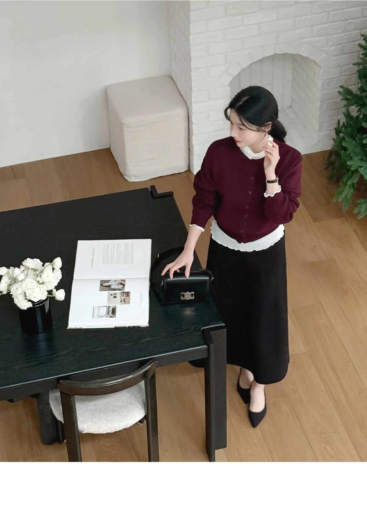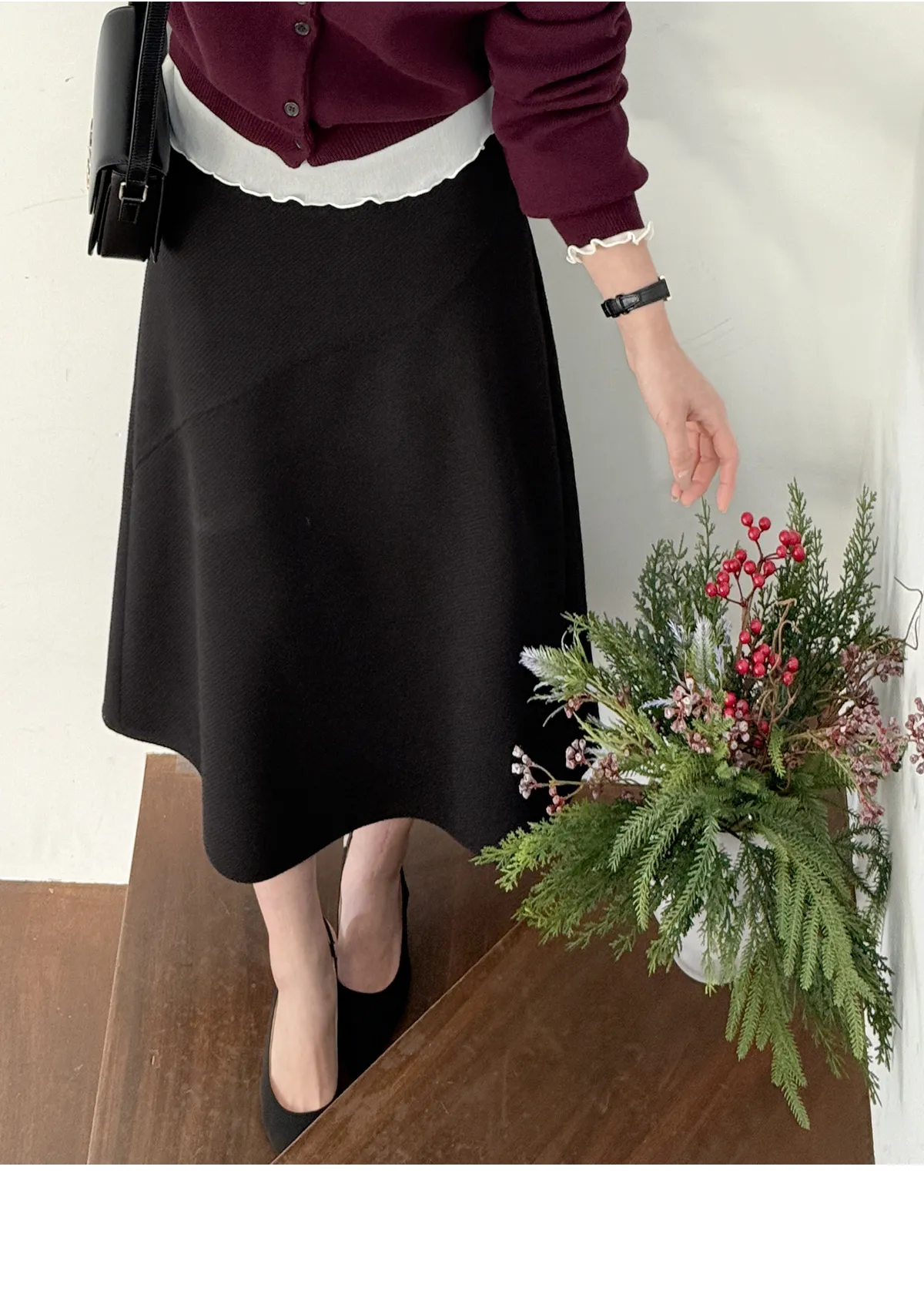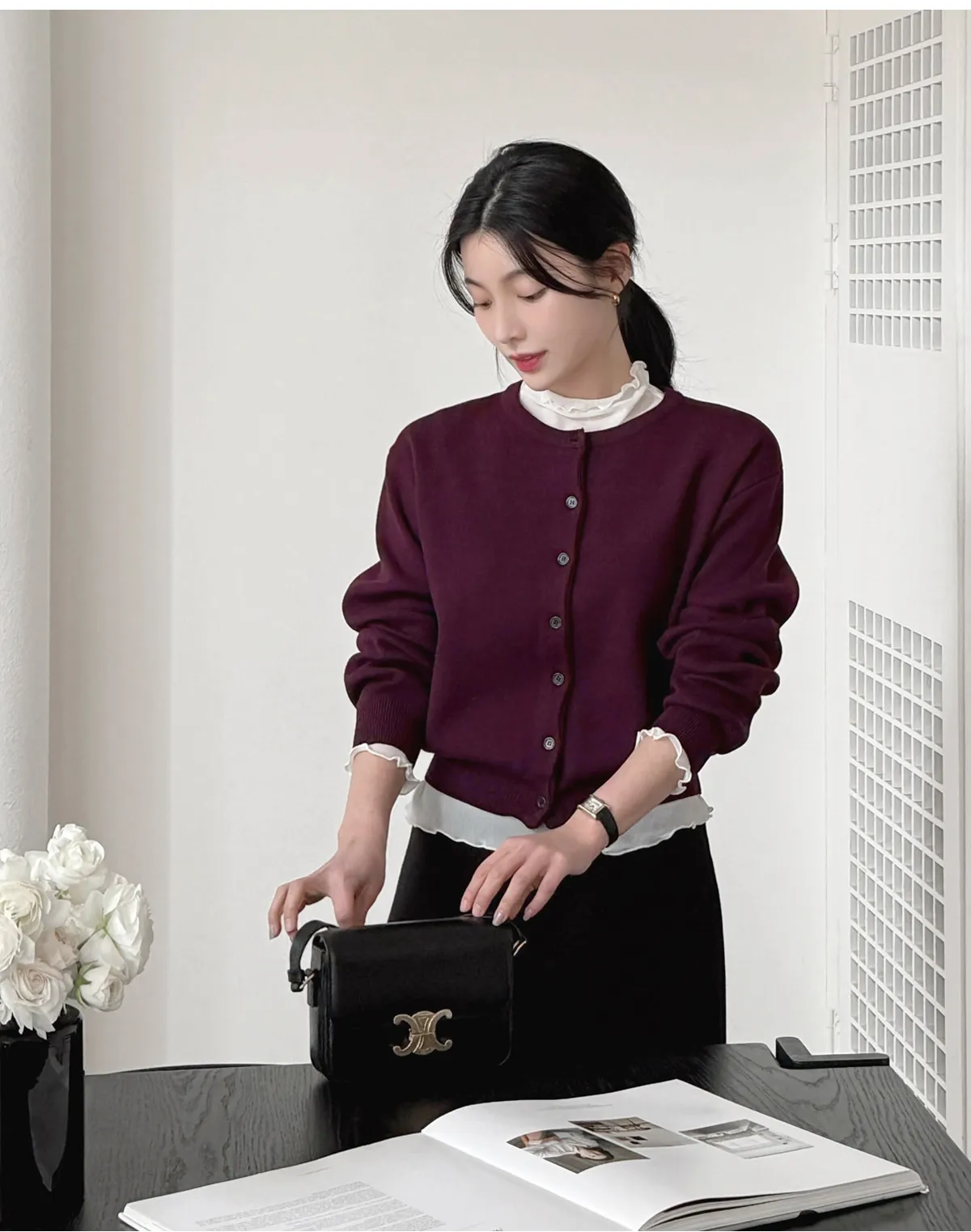 着用 : ベージュ/Vネック / FREE,バーガンディ/ラウンドネック / FREE,オリーブ/ラウンドネック / FREE