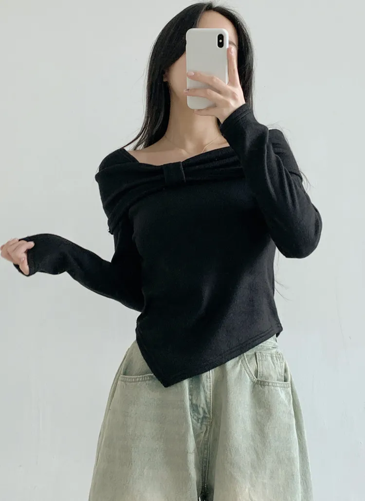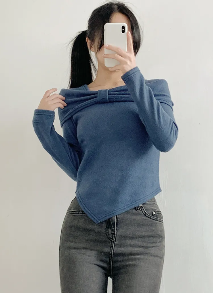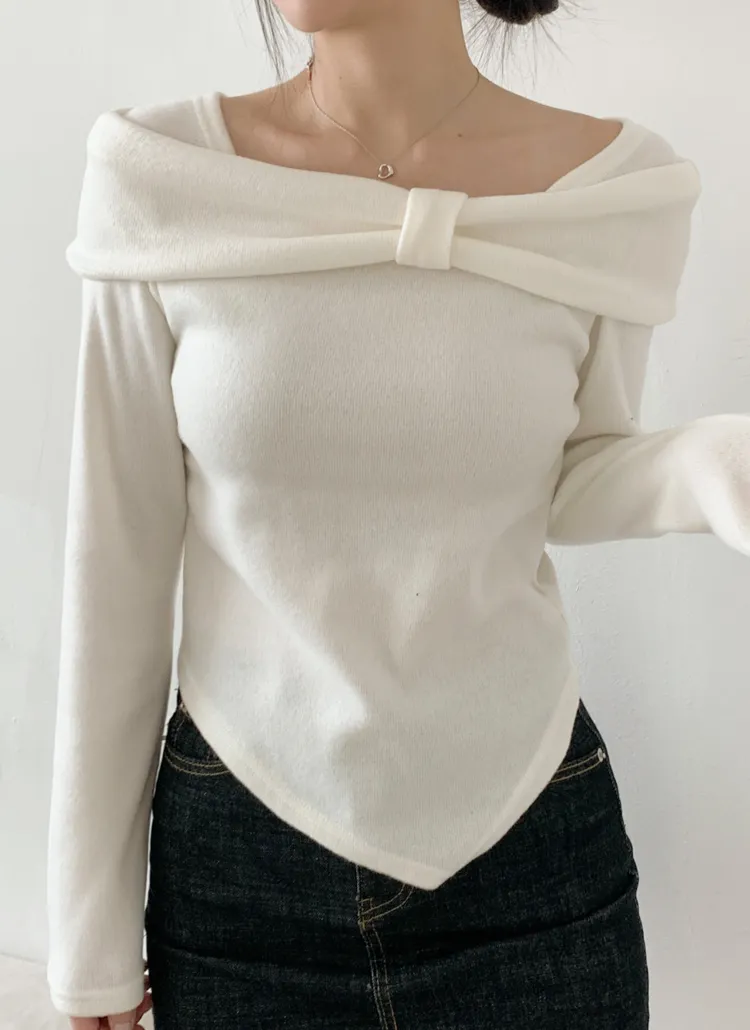 裏起毛オフショルダースリム長袖カラーTシャツ・B1951783