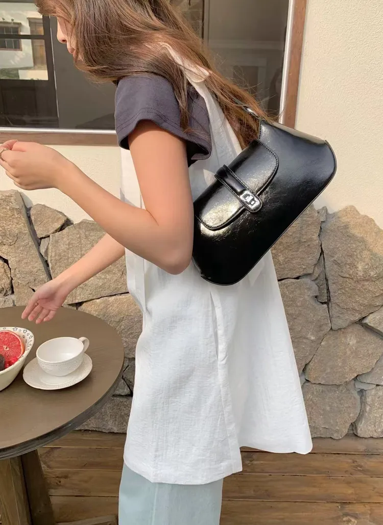レザー調シンプルショルダーバッグ