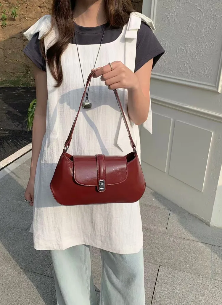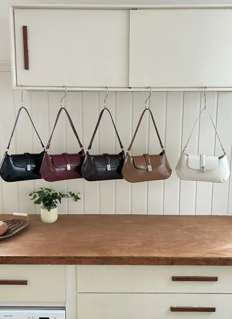 カウレザーシンプルカラーショルダーバッグ