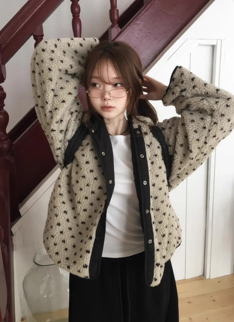 ファー裏地スエード調ジップアップカラースナップボタンジャンパー