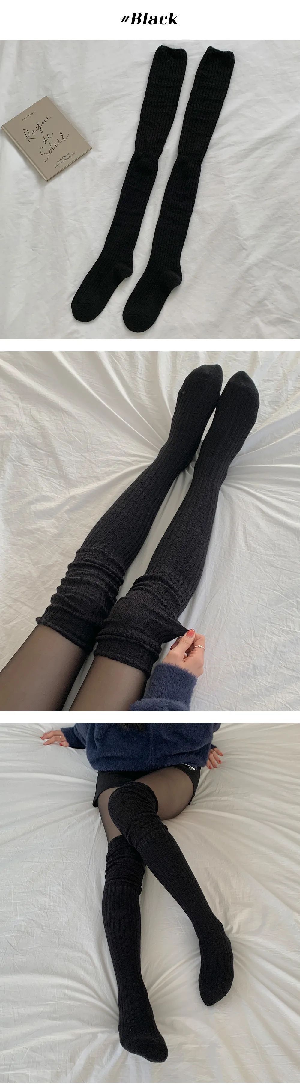 裏起毛ベルベットリブハイウエストスリムストッキング