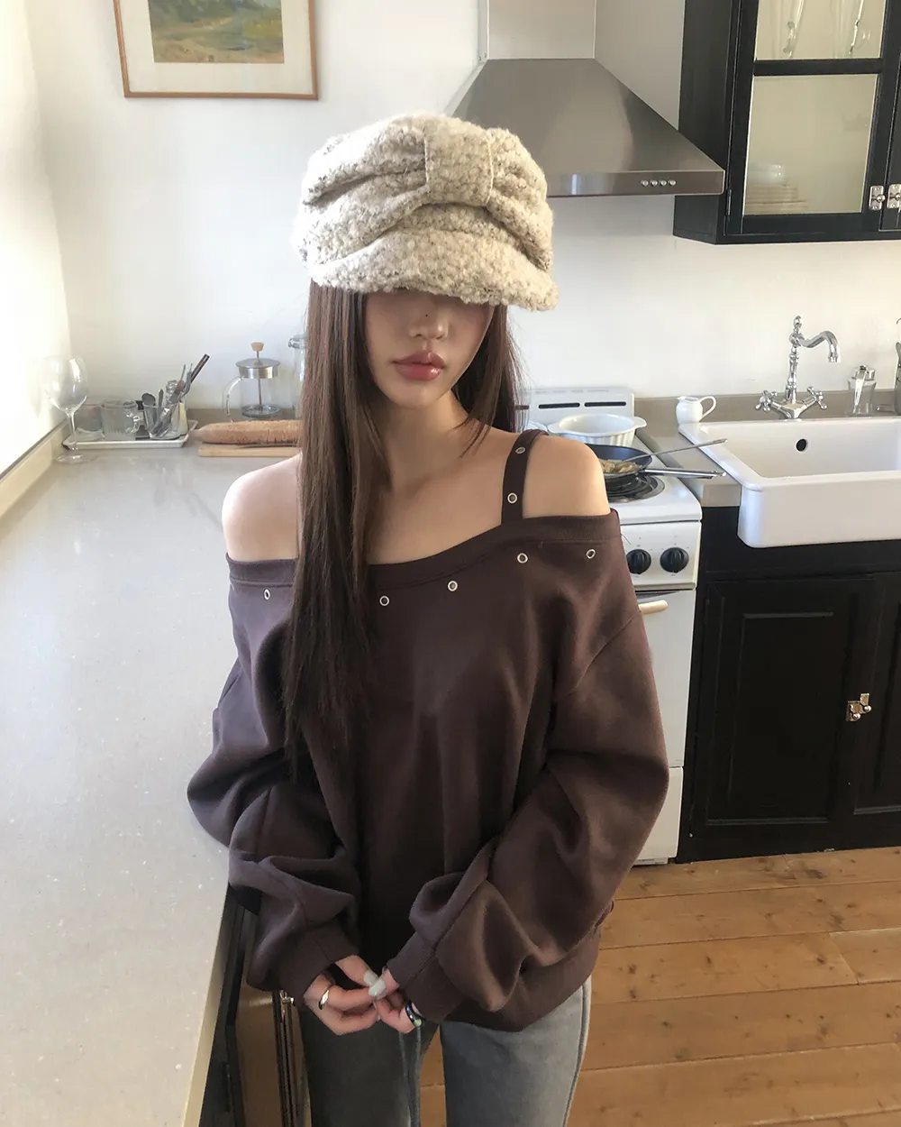 着用 : ベージュ / FREE,ブラック / FREE