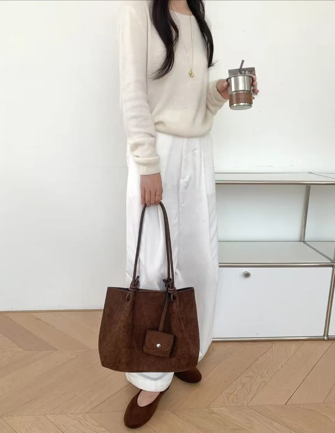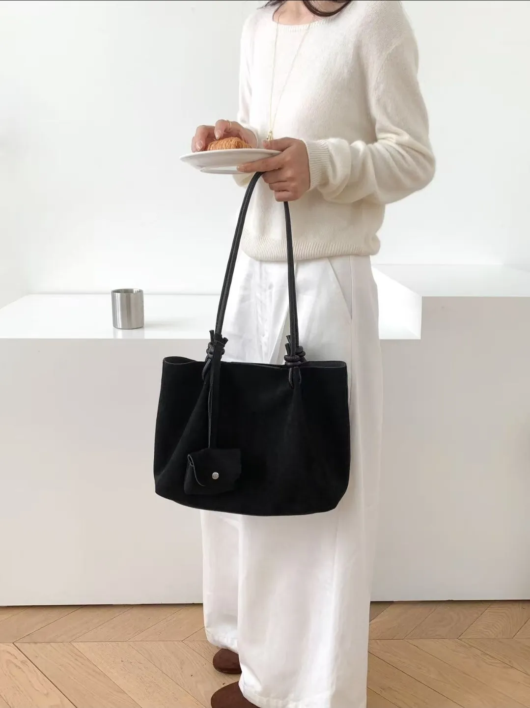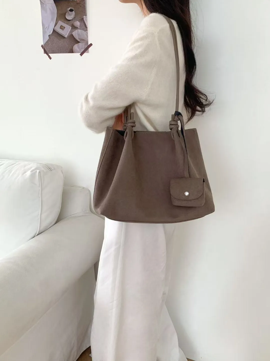 スエード調無地ショルダーバッグポーチ付