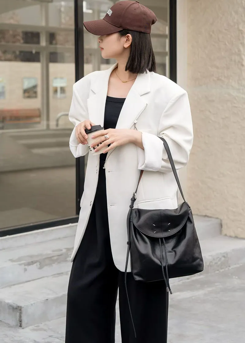 カウレザーシンプルカラーショルダーバッグ