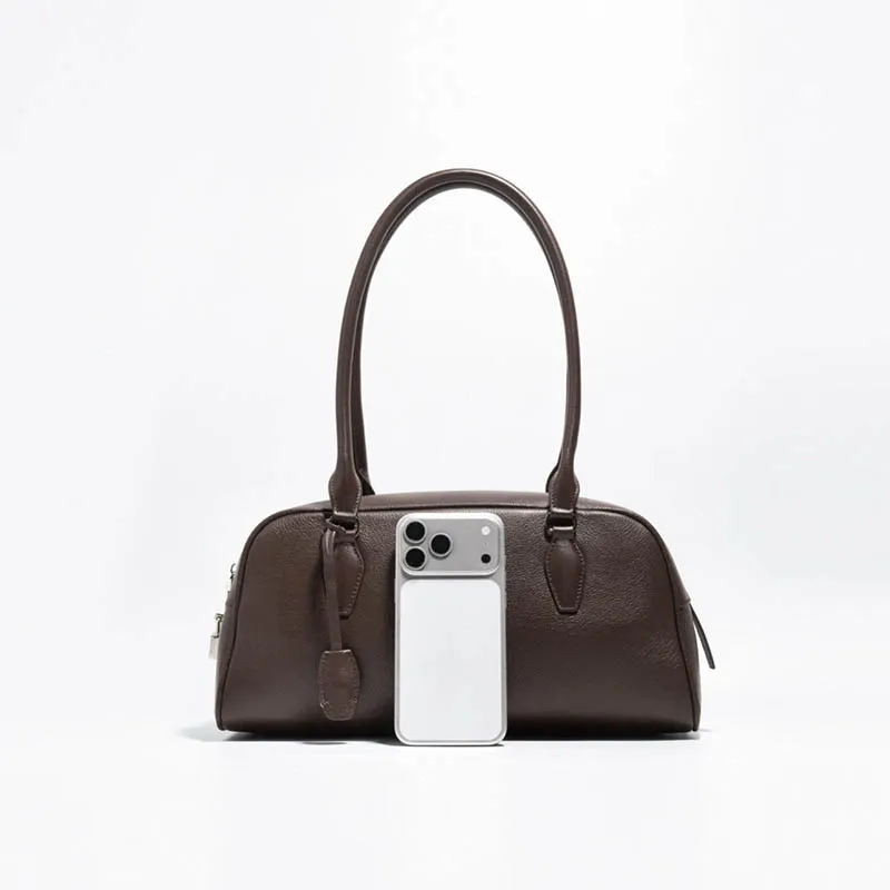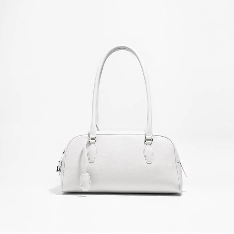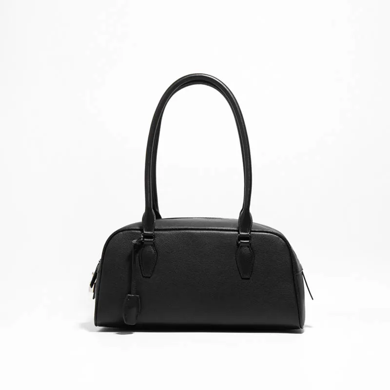 ジップアップバックルDリング無地ショルダーバッグ