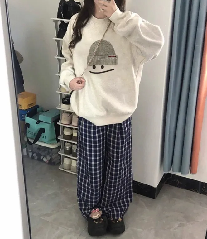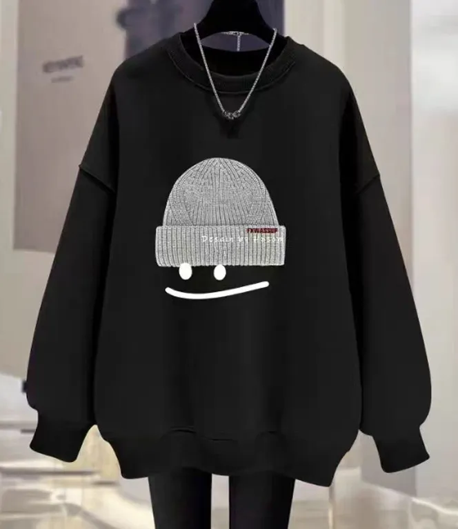 裏起毛コットンルーズ長袖ラウンドネックカラープリントスウェット