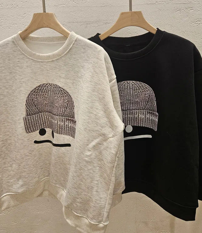 裏起毛ラウンドネックオーバーサイズ長袖刺繍スウェット