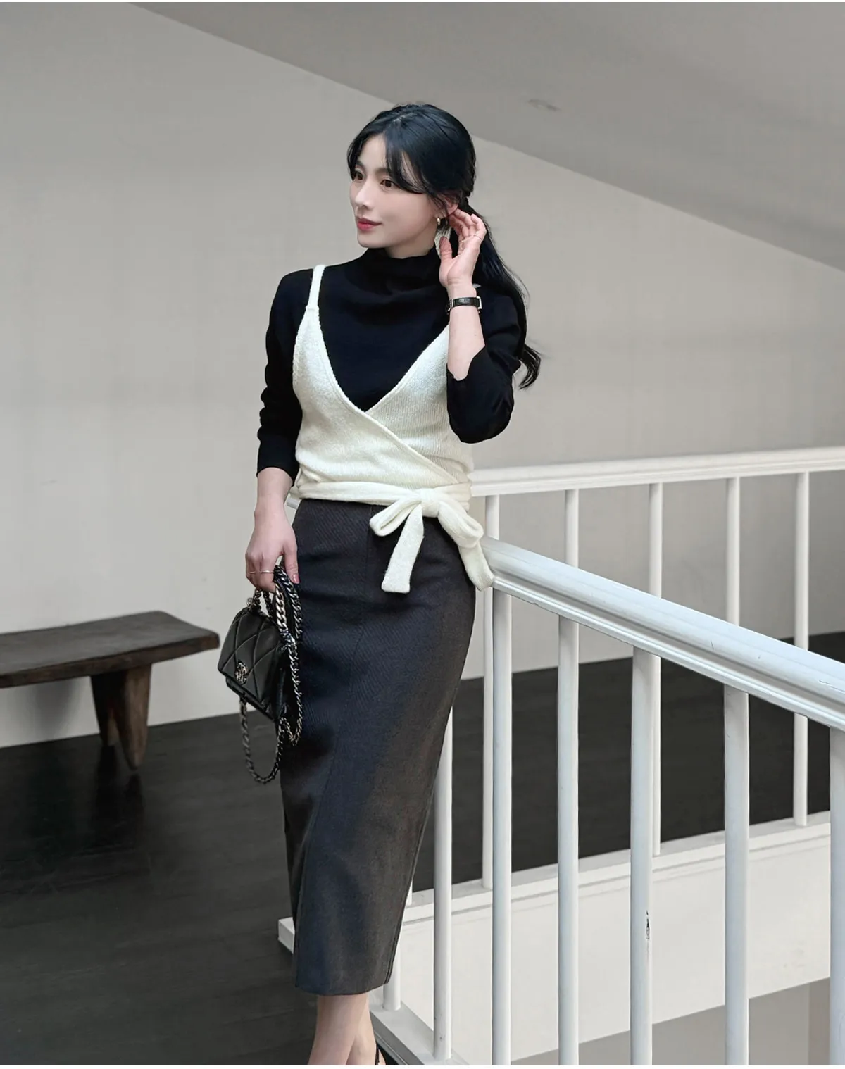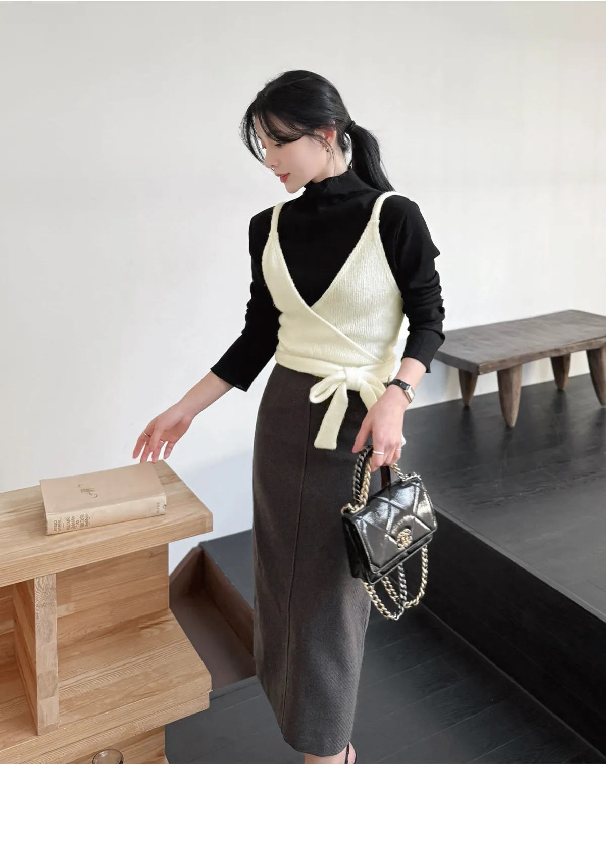 着用 : アイボリー / FREE,ブラック / FREE