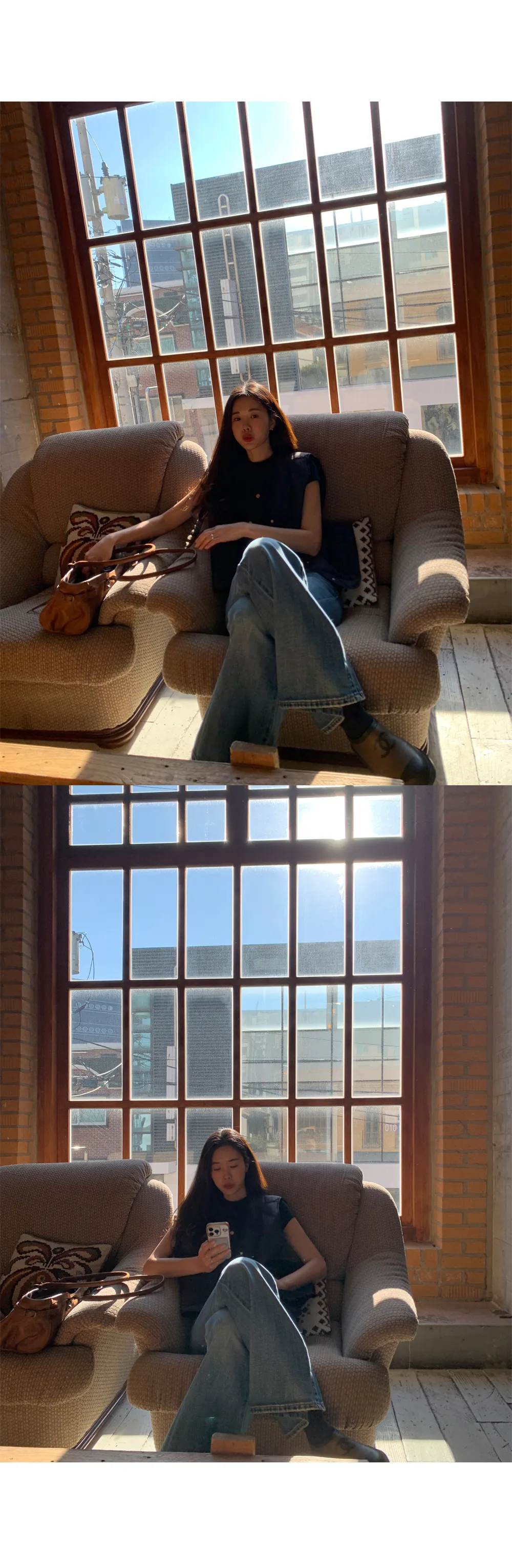 着用 : khakibeige / FREE,washedblack / FREE