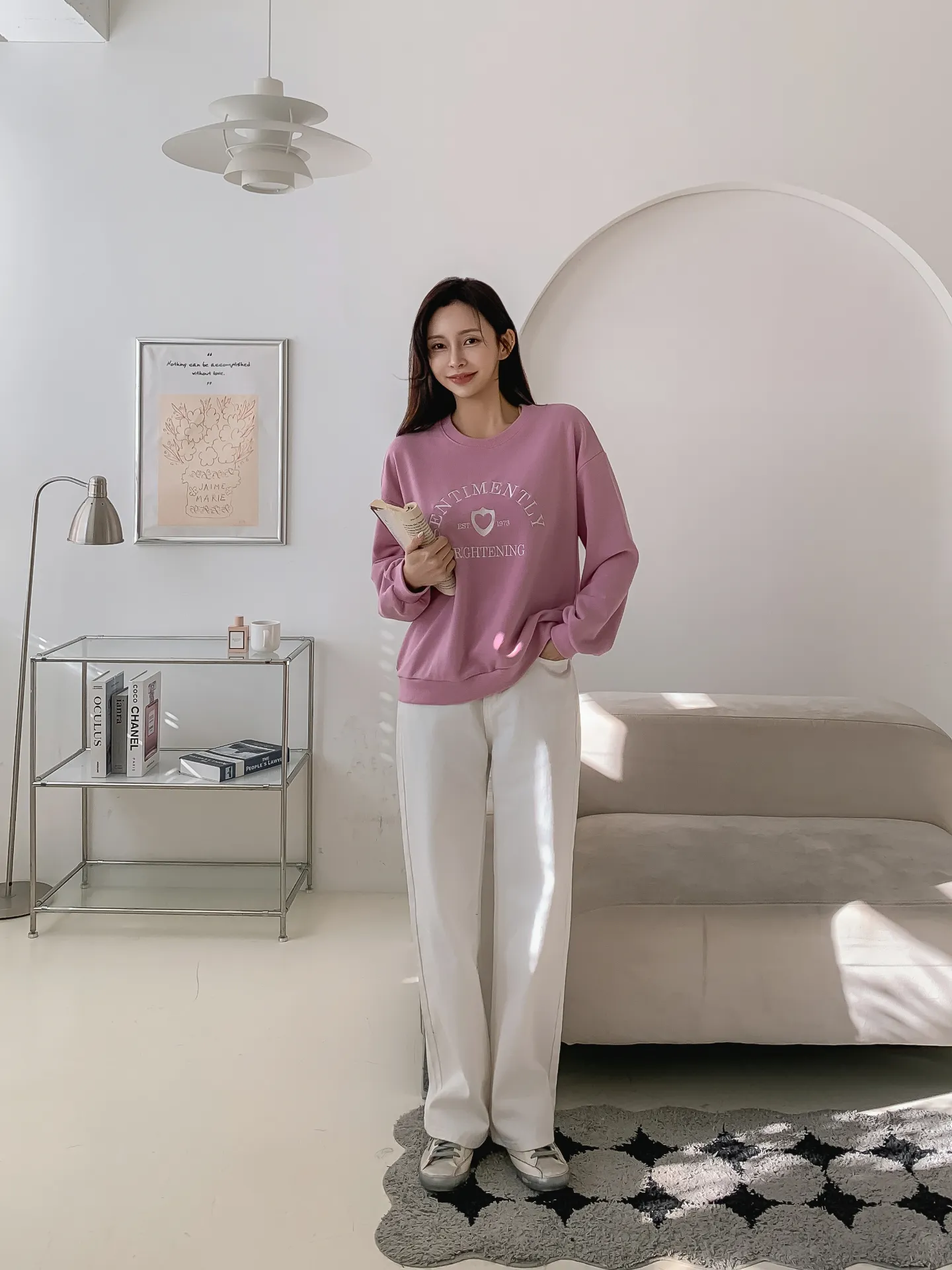 ラウンドネックオーバーサイズ長袖刺繍スウェット