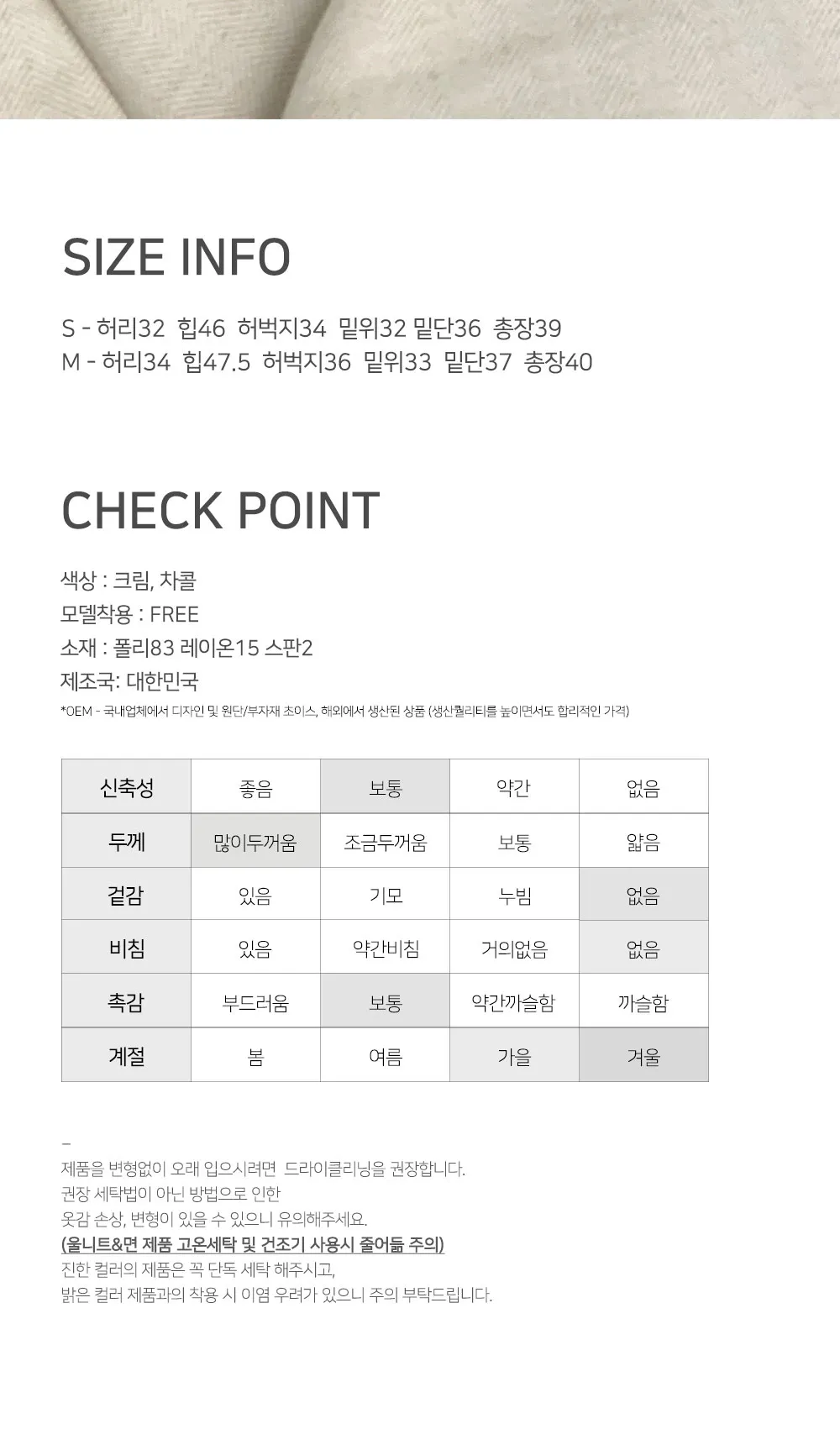着用 : クリーム / S,チャコール / S