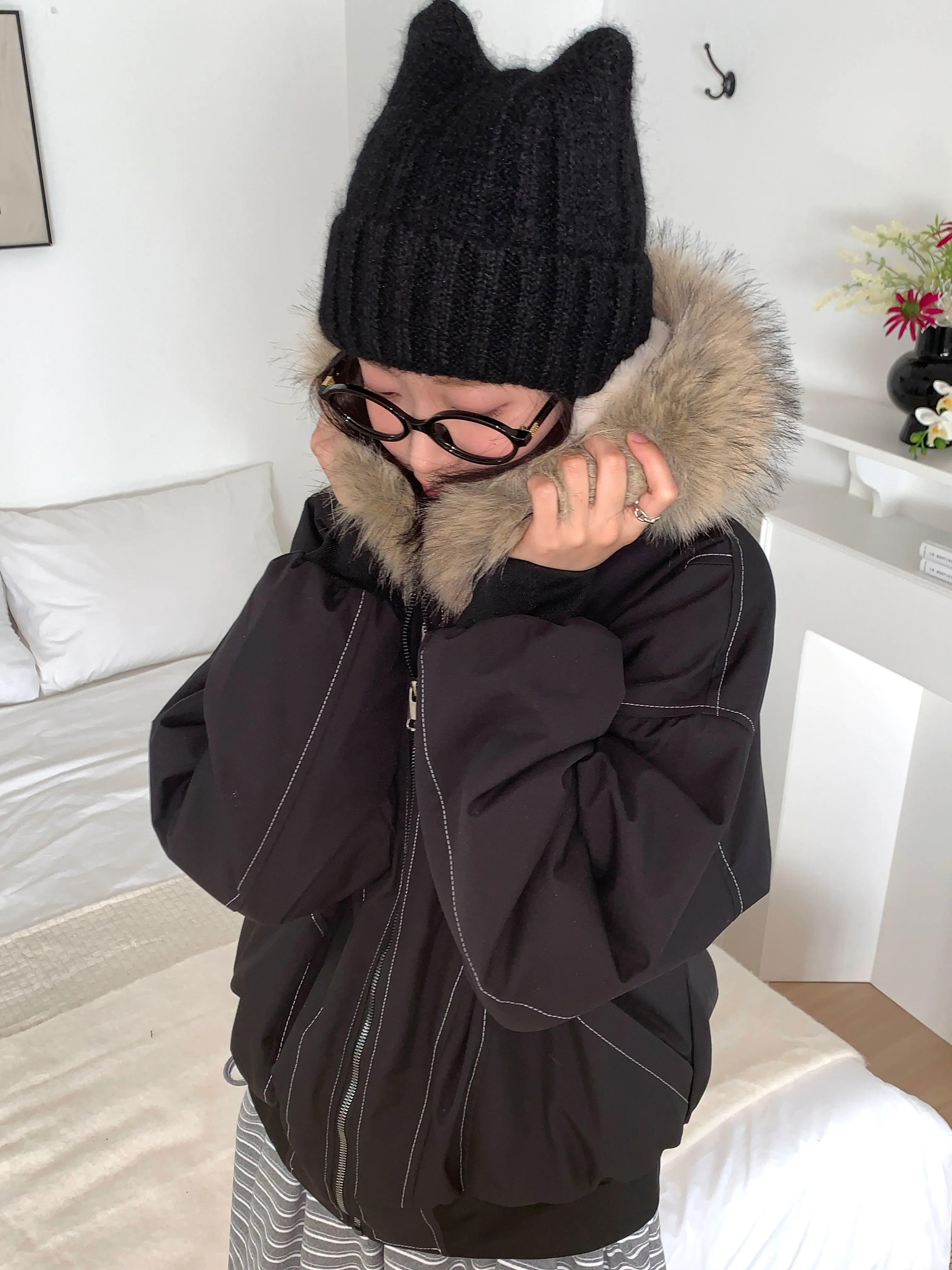 ツーボタン配色ニットバラクラバ