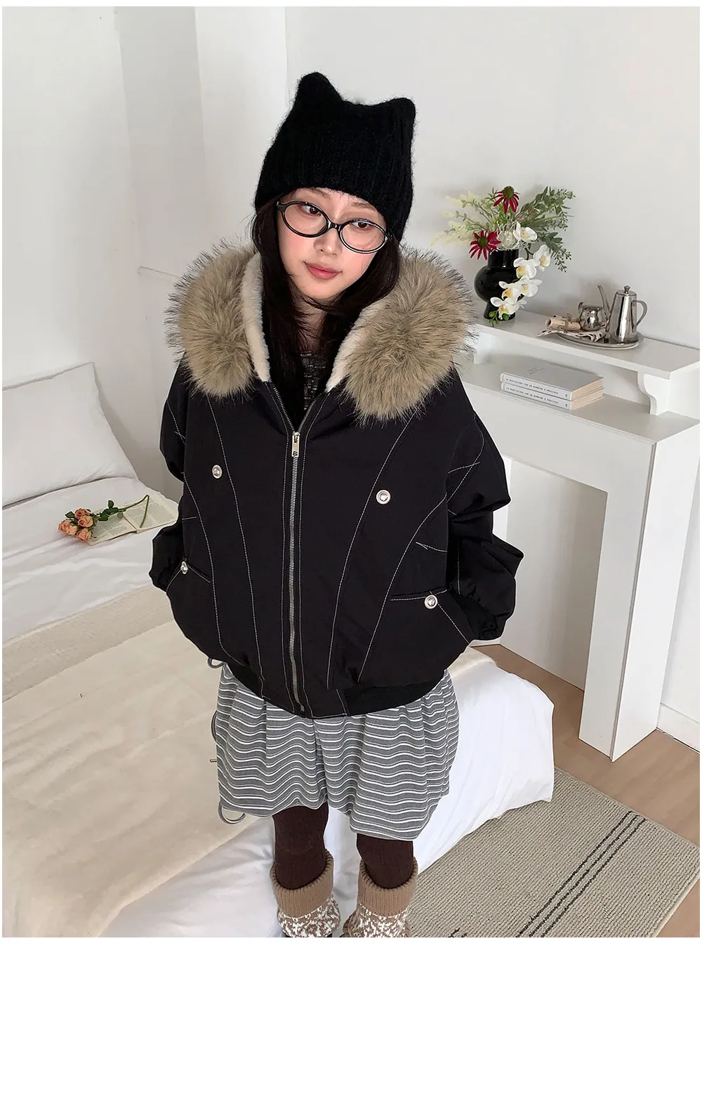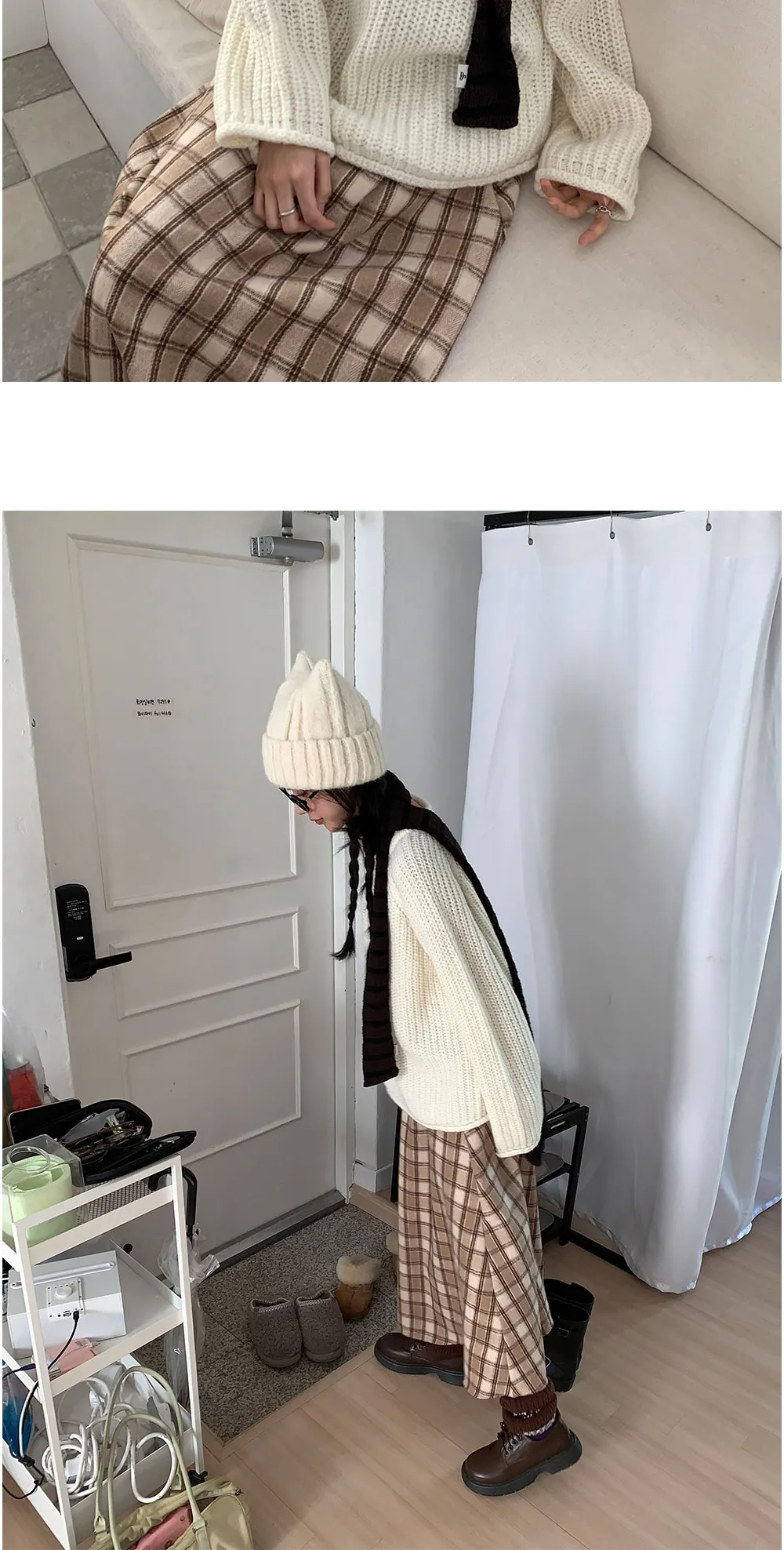 ファー裏地ウエストゴムスリムロングスリットスカート