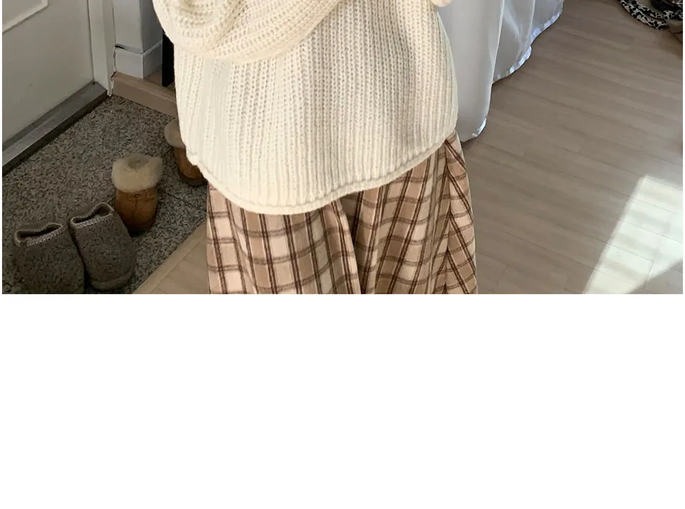 ウール混パールスリットボートネックスリムクロップドニット