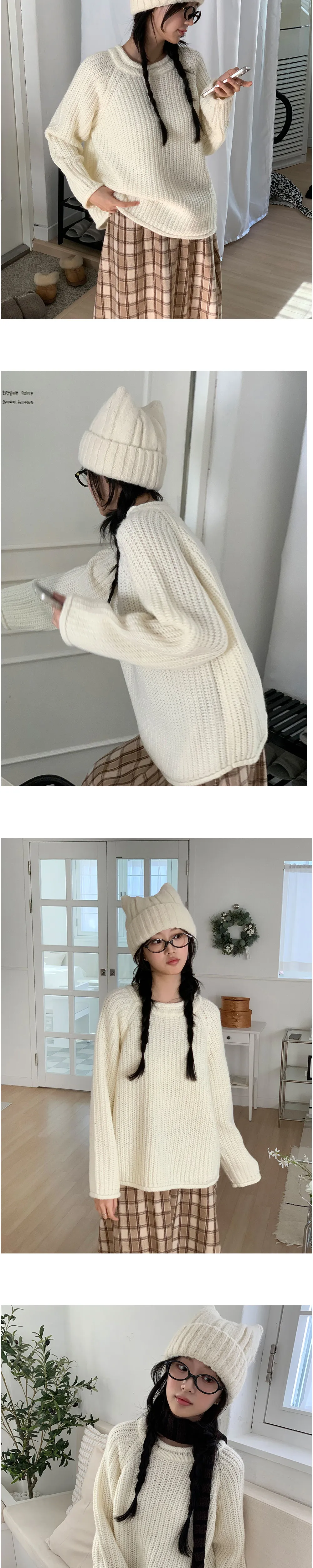 リブ長袖スリムオフショルダーニット