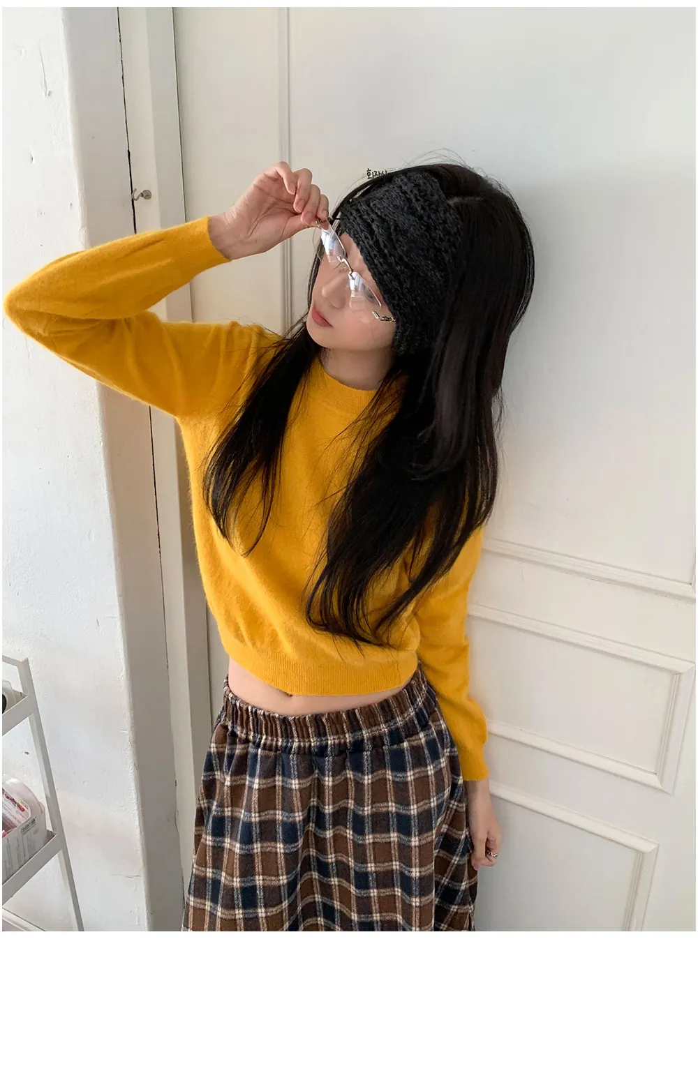 ウール混パールスリットボートネックスリムクロップドニット