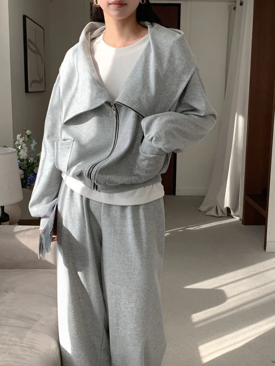 ファー裏地クロップドベロアジップパーカー&ベロアパンツSET