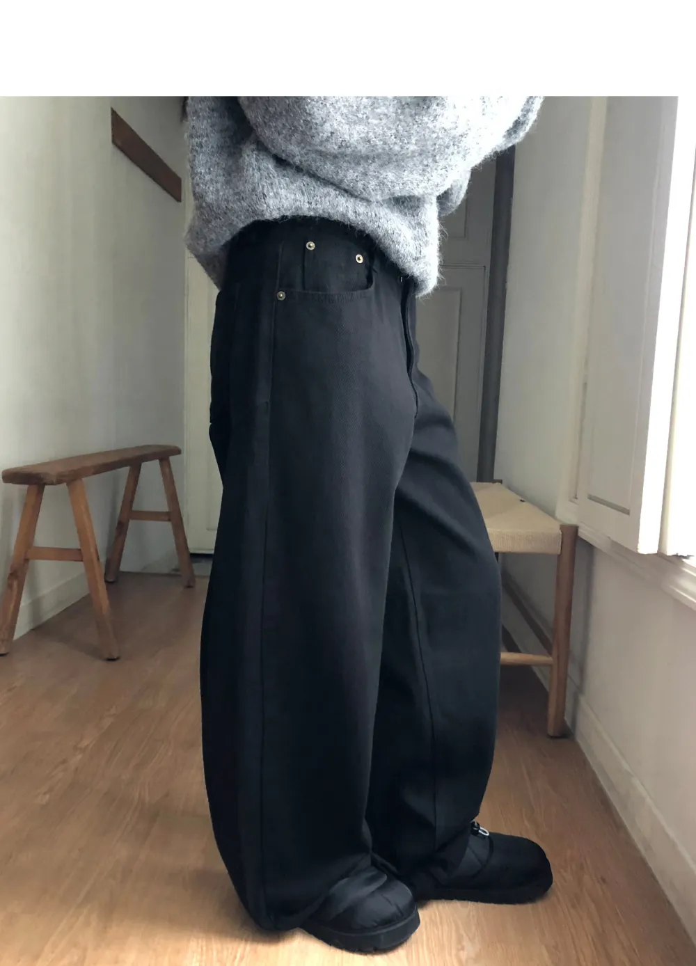 | Size | ウエスト | ヒップ | 裾幅 | わたり | 股上 | 着丈 |