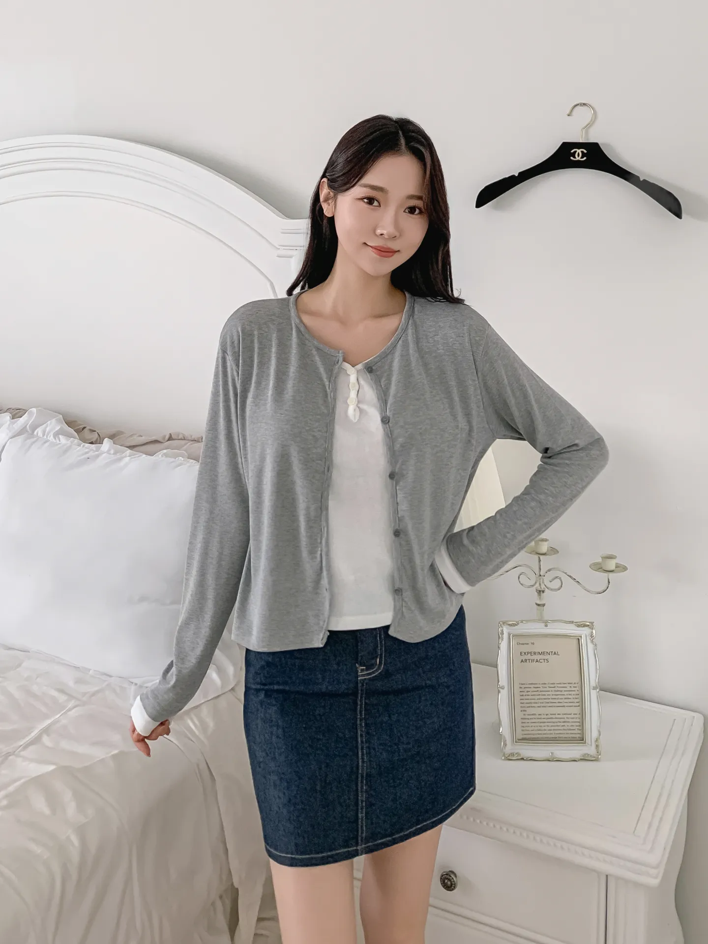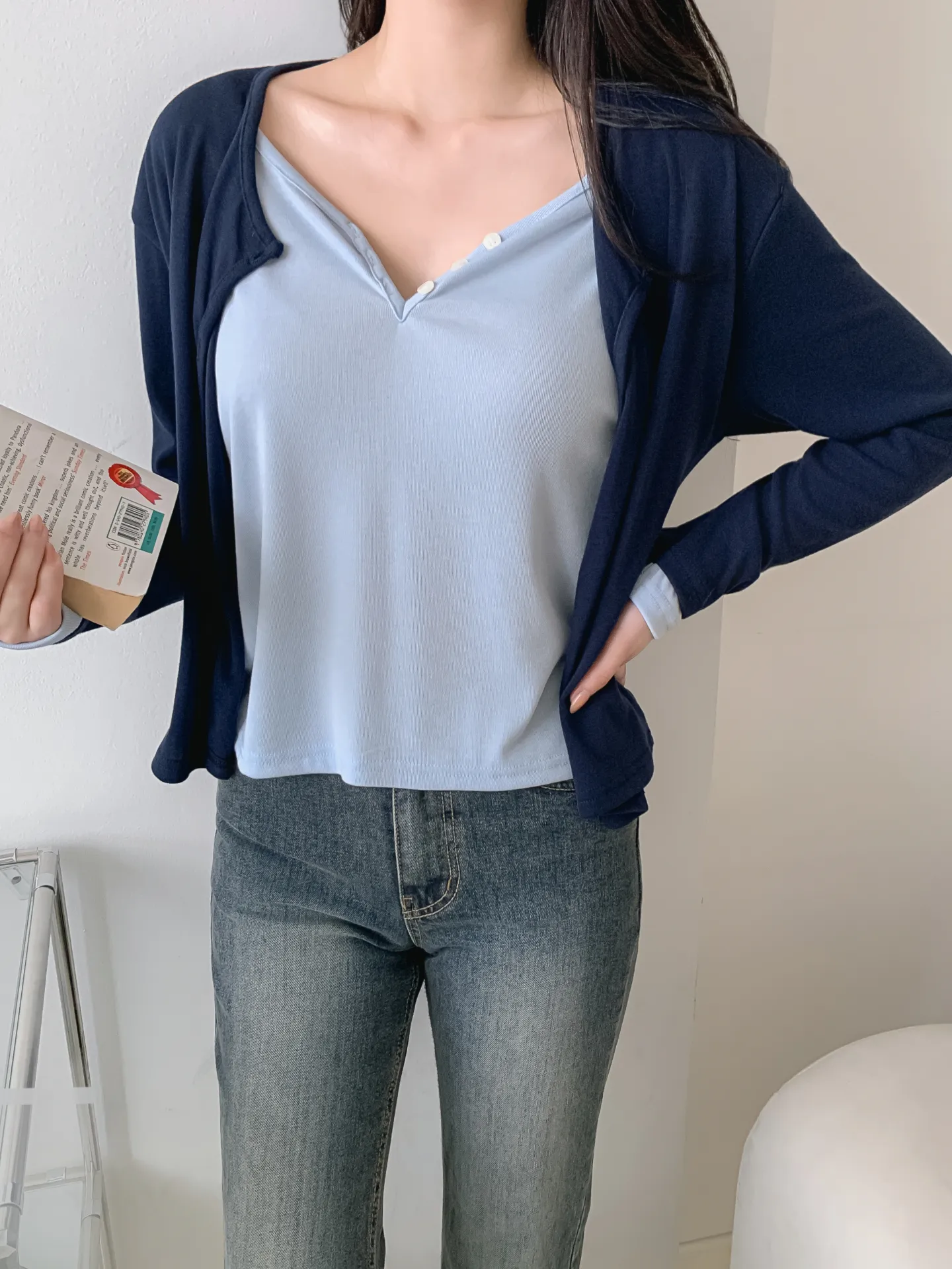 ラウンドネックシンプルスリムカーディガン