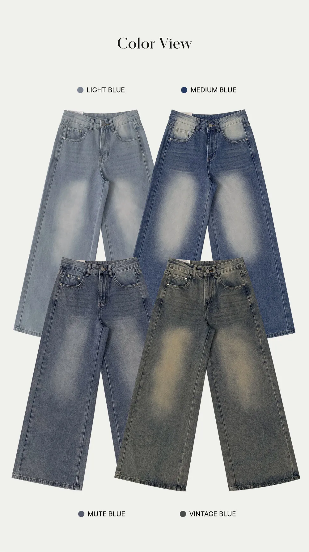 着用 : ライトブルーデニム / S,ミュートブルーデニム / S,ブルーデニム / S,ビンテージディープブルーデニム / S