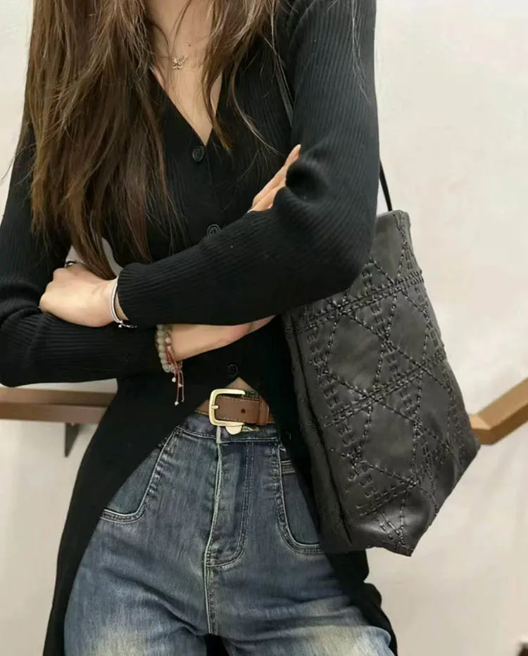 シーレザーリボンシンプルショルダーバッグ