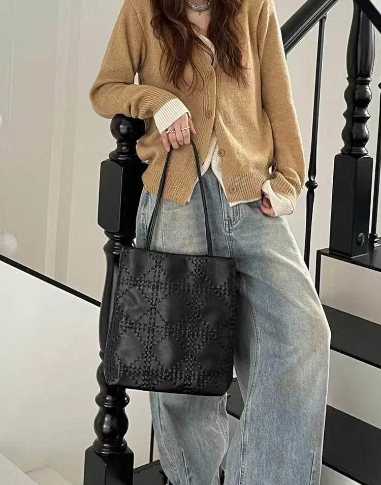 カウレザーボタンシンプルベーシックカラーショルダーバッグストラップ付