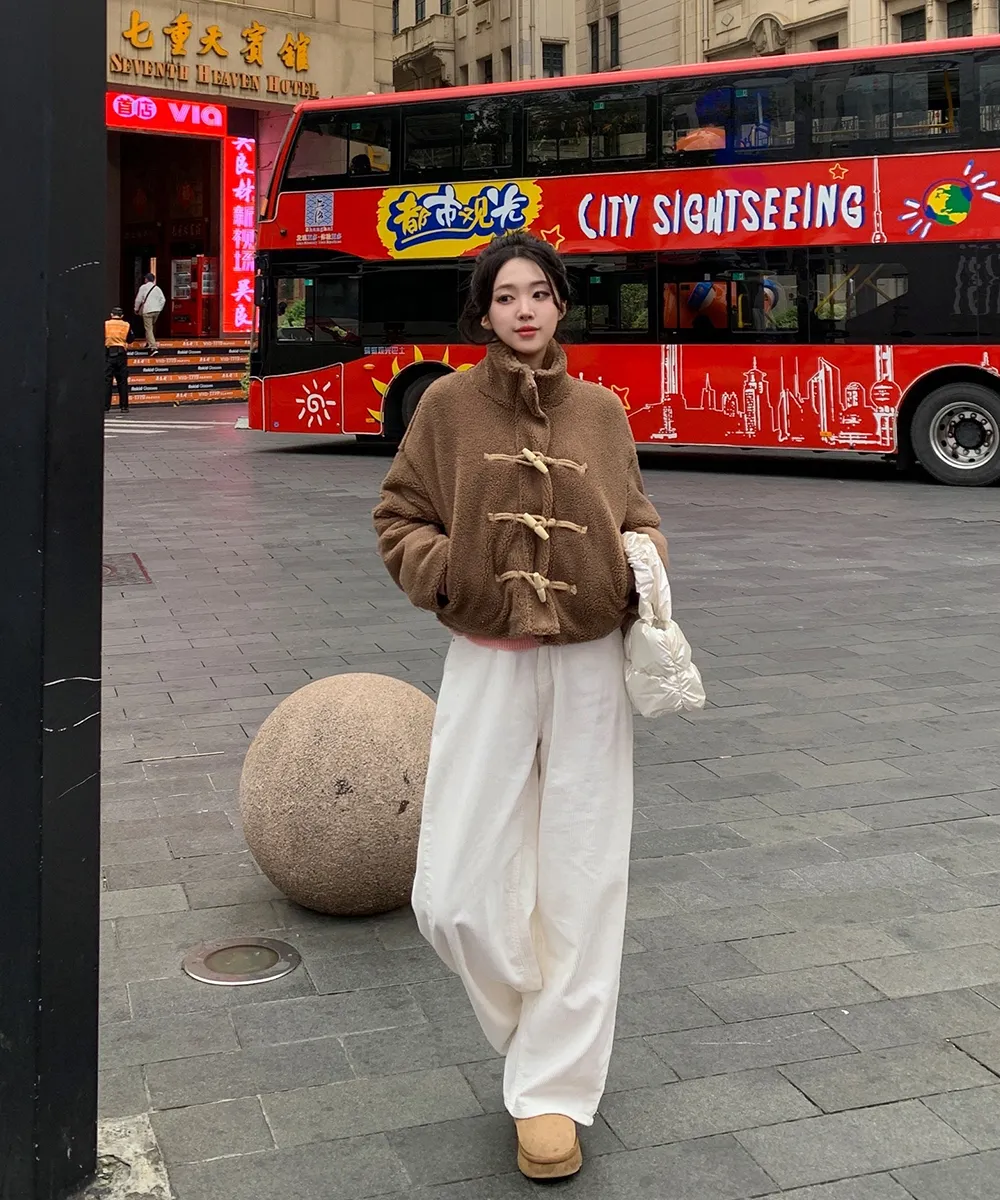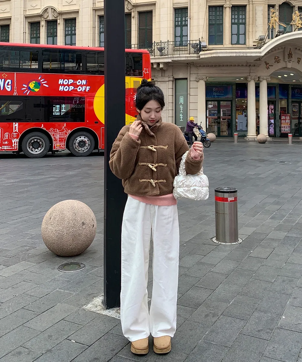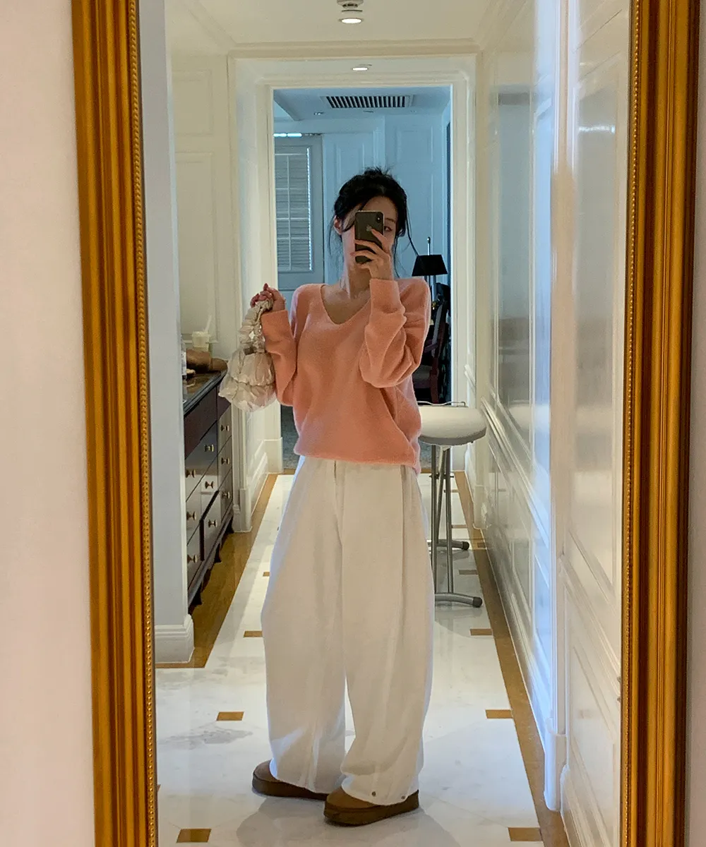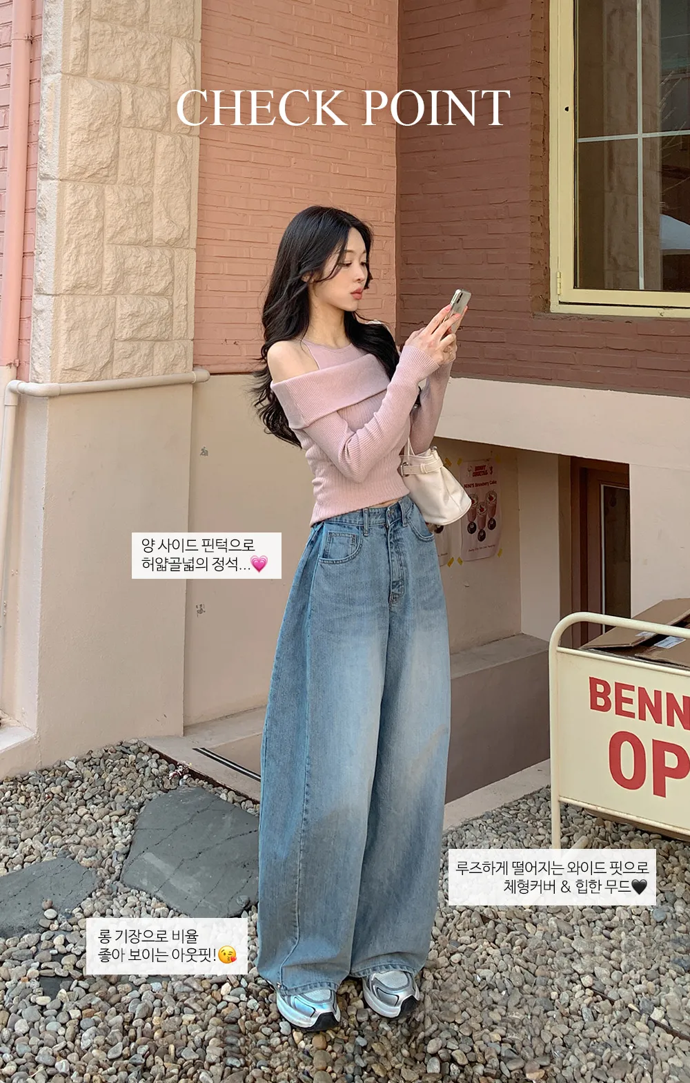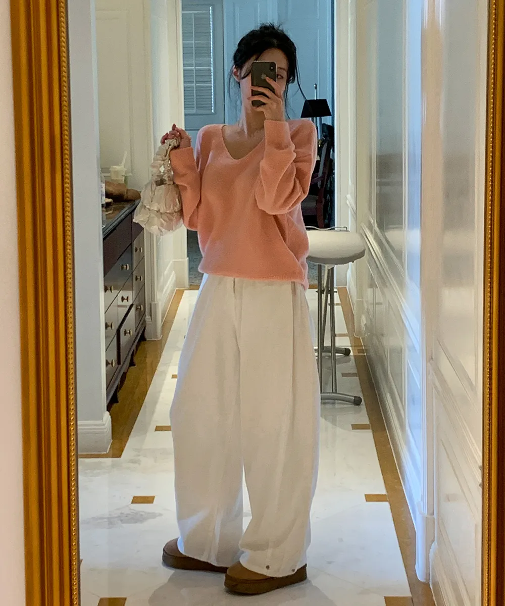 裏起毛コットンウォッシングポケットハイウエストワイドビッグループスナップボタンバックポケットヒドゥンバンディングデニムパンツ[選べる丈]