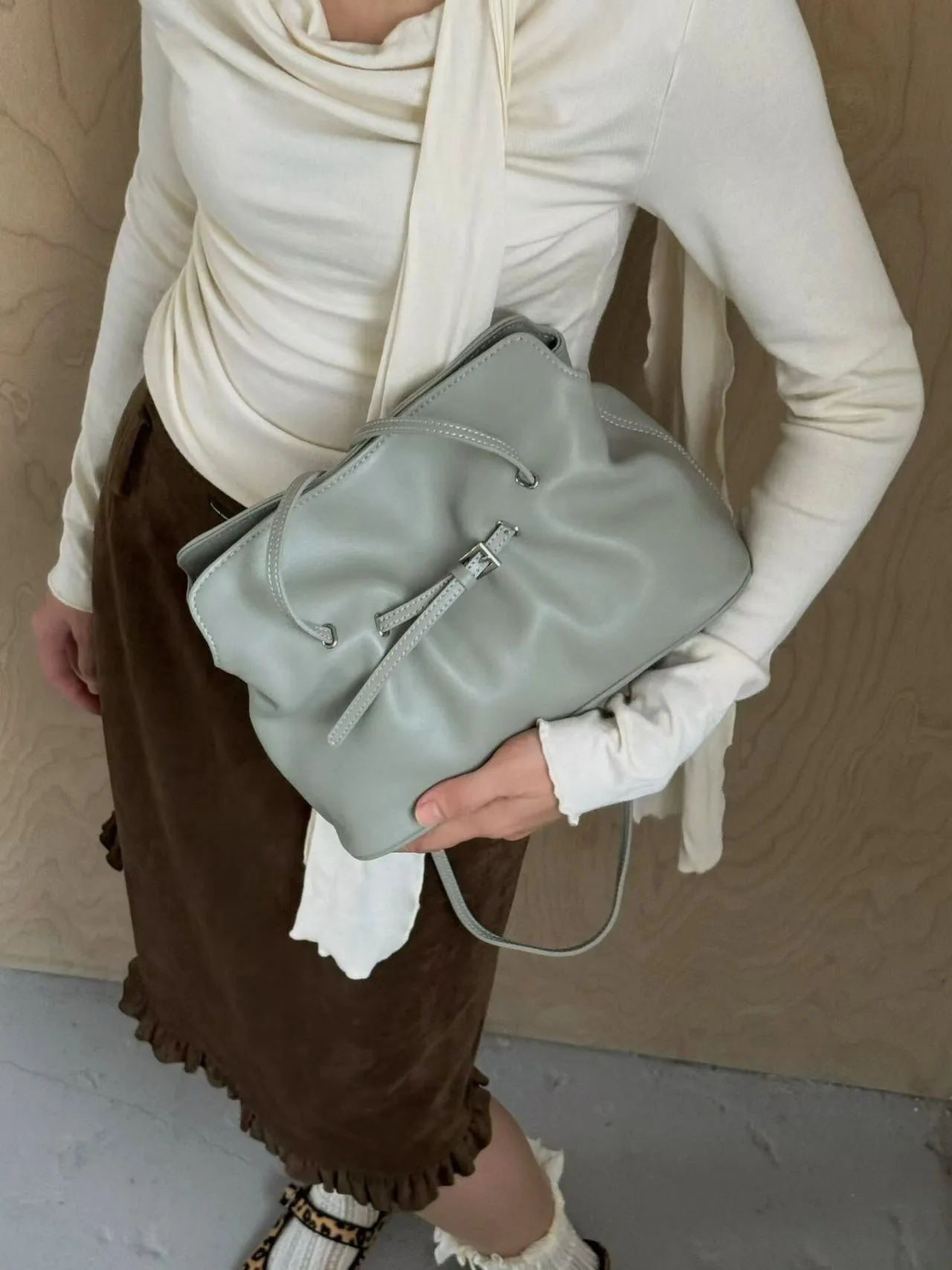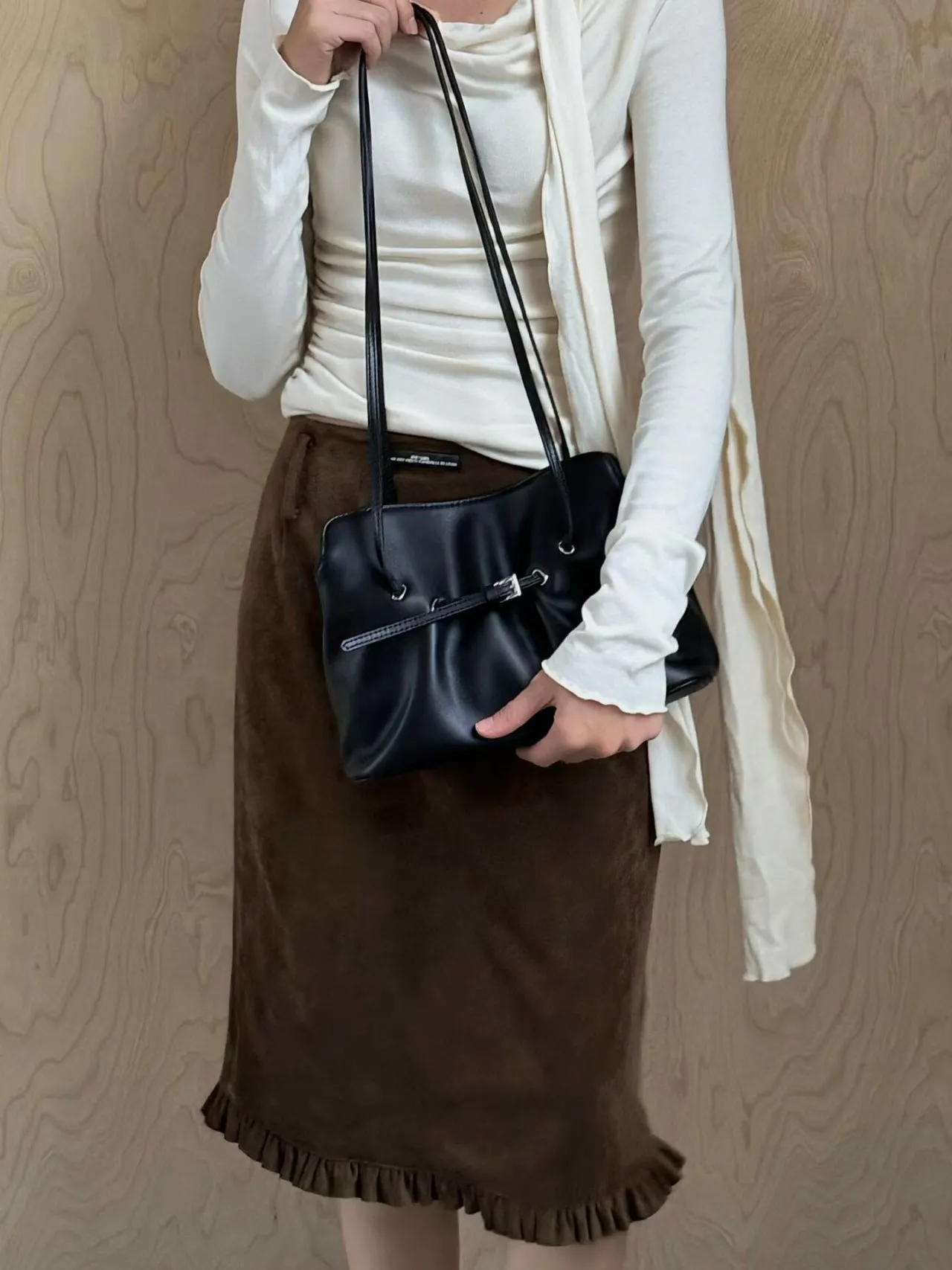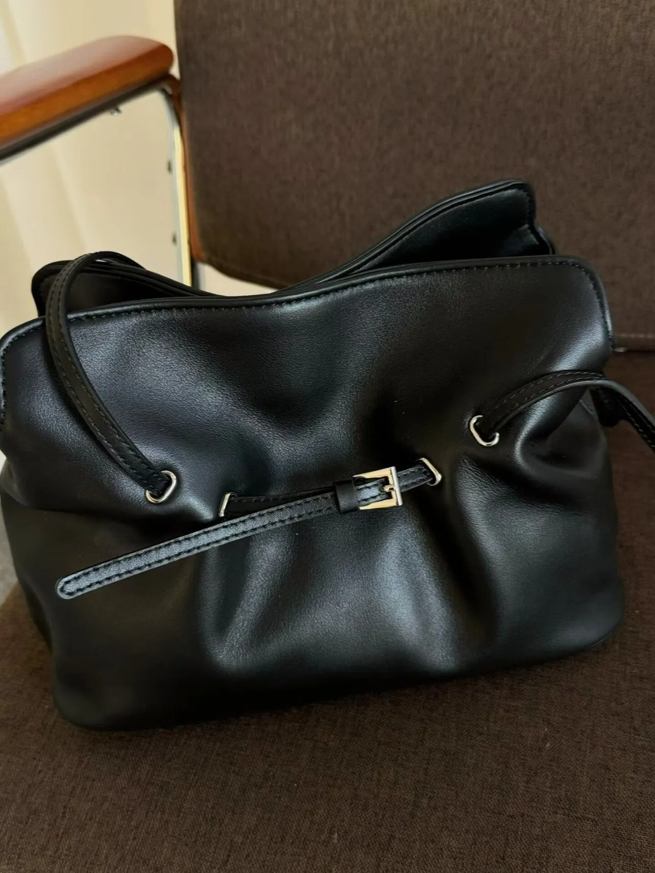 カウレザーバックルシンプルショルダーバッグストラップ付