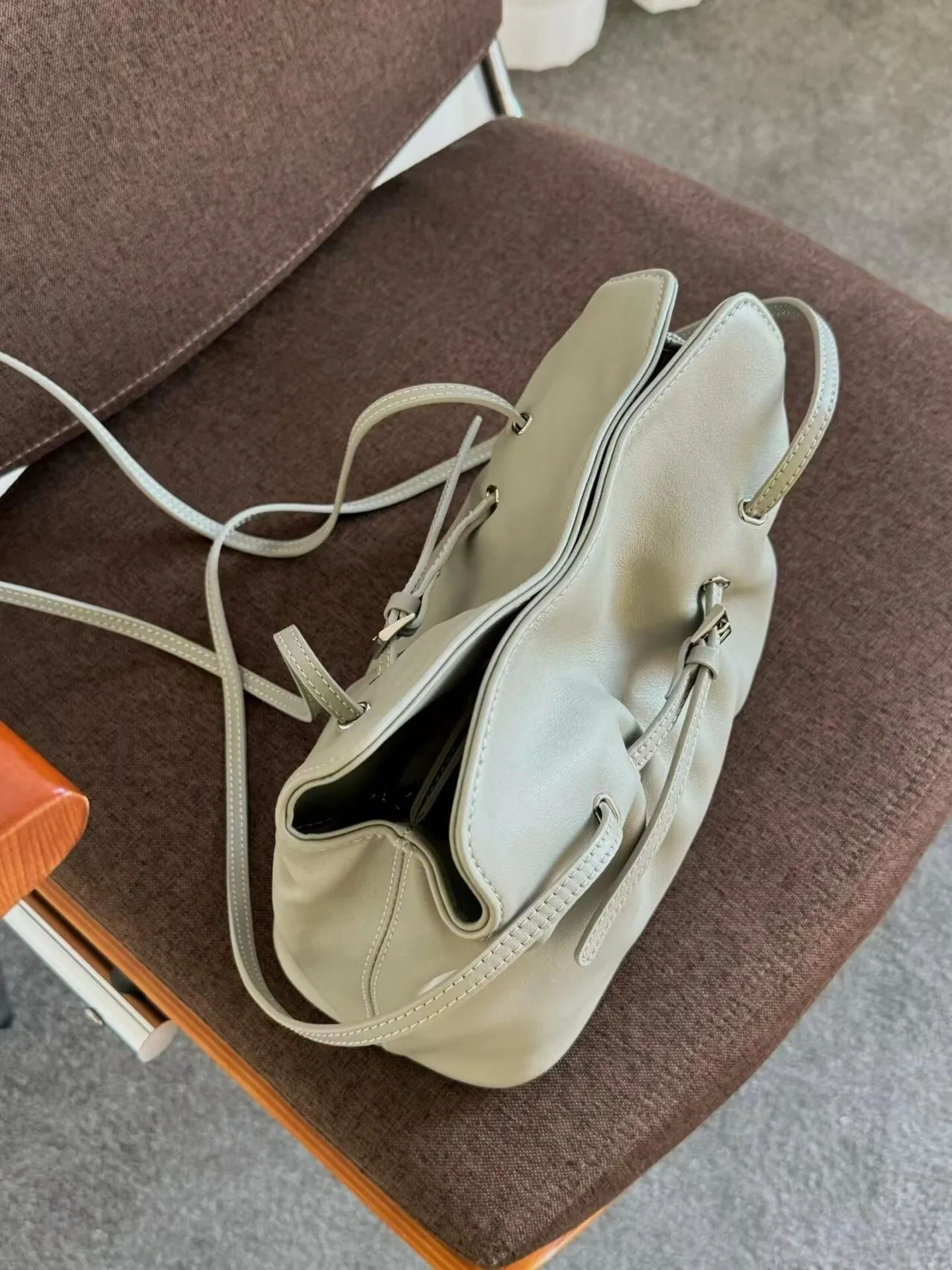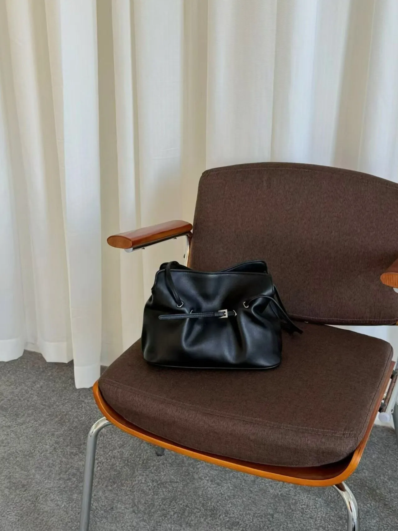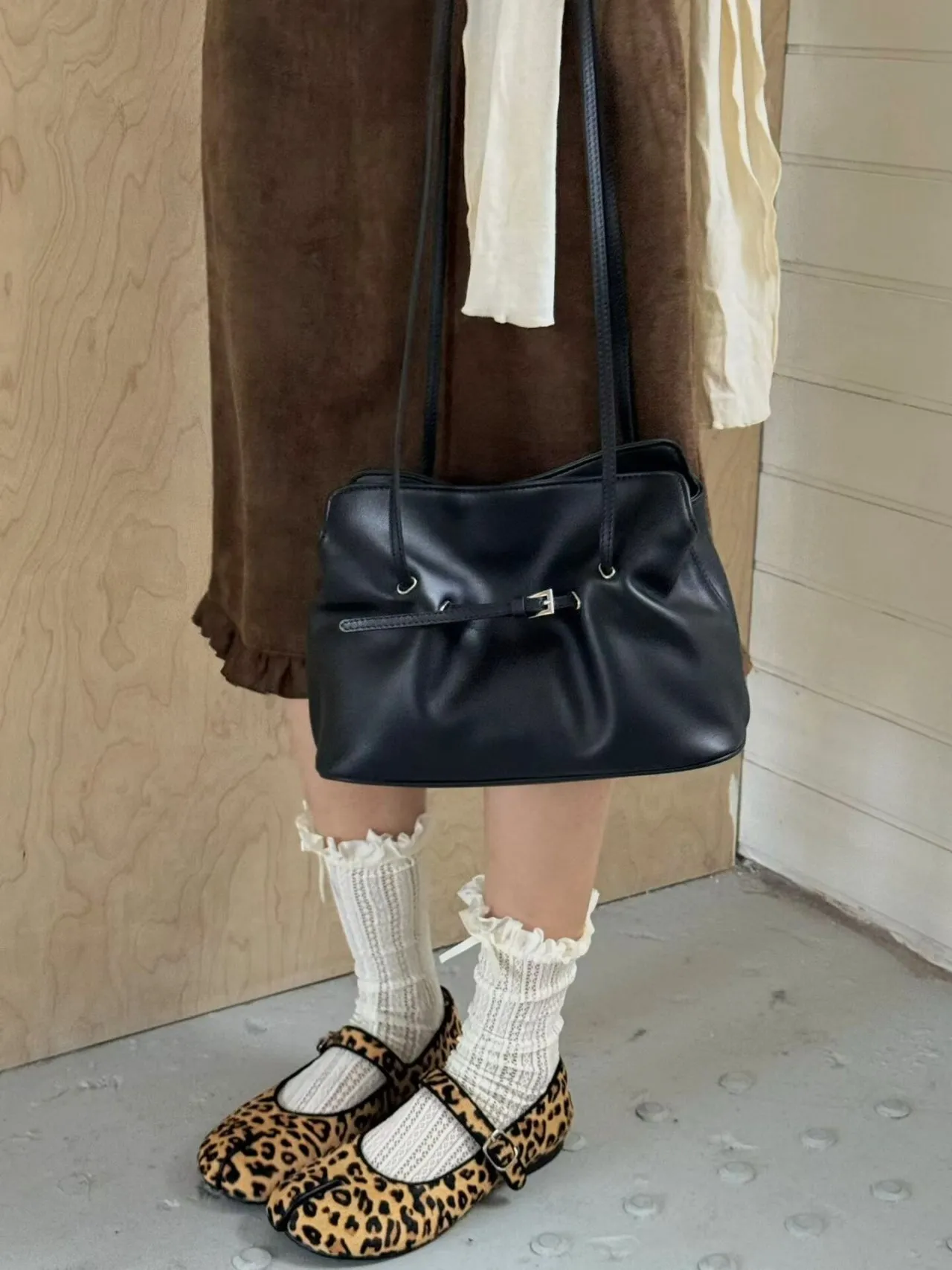 カウレザーバックルシンプルショルダーバッグストラップ付