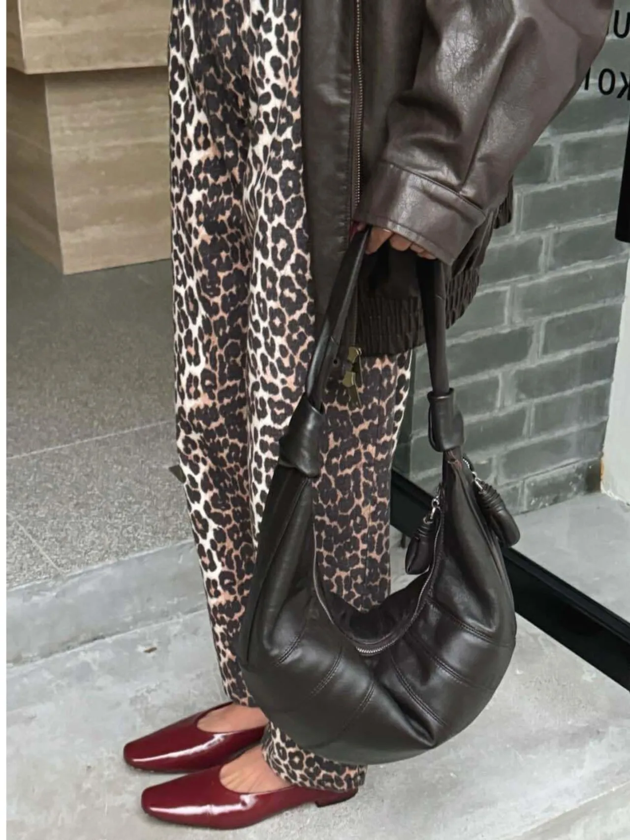 クラックレザー調ホーボーショルダーバッグ