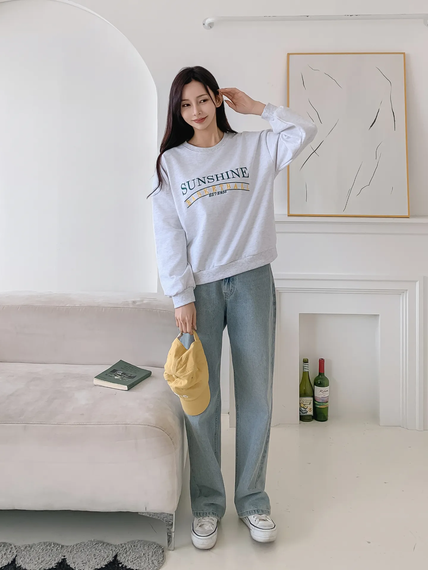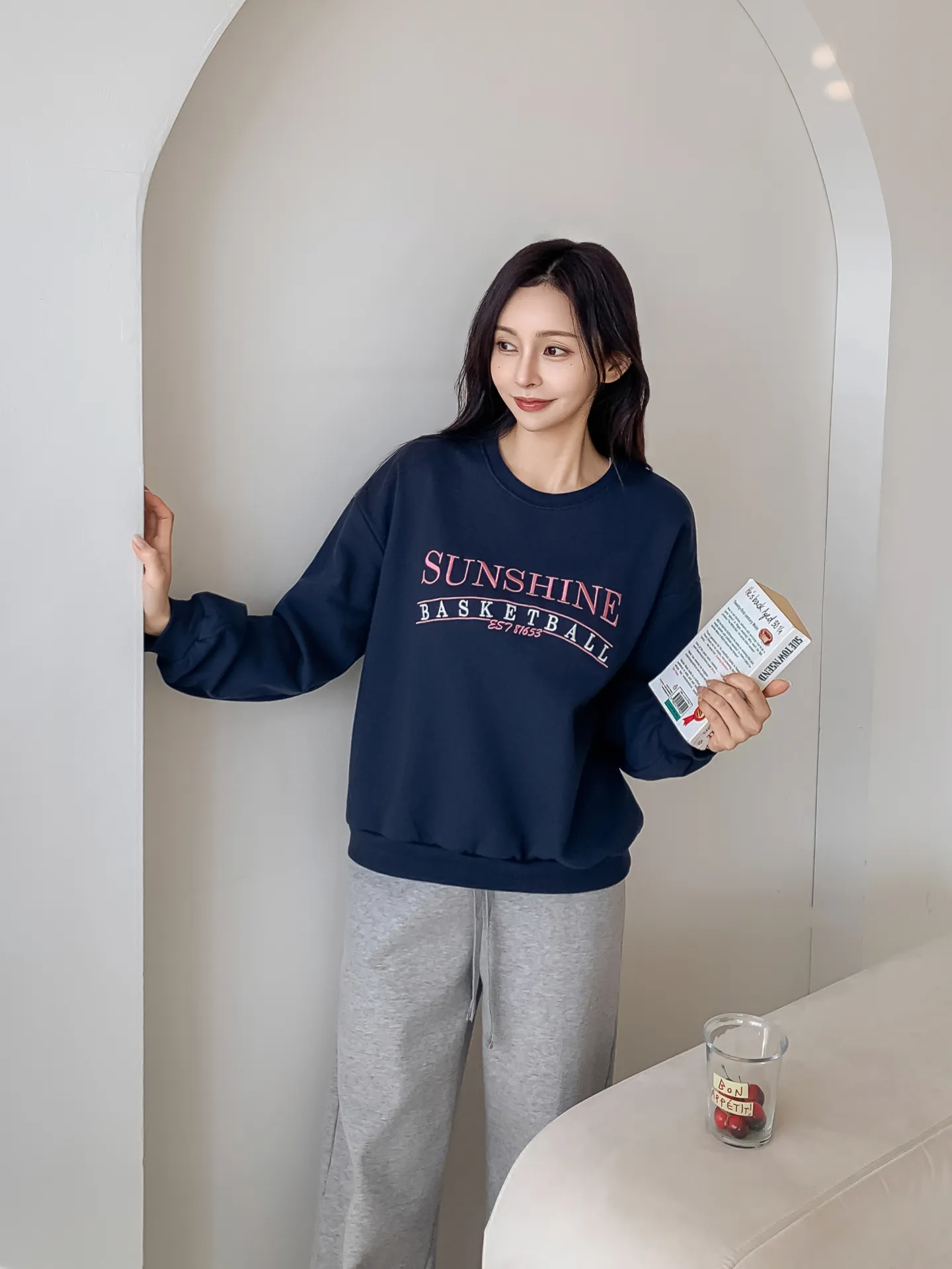 ラウンドネックルーズ長袖刺繍スウェット・B1955023
