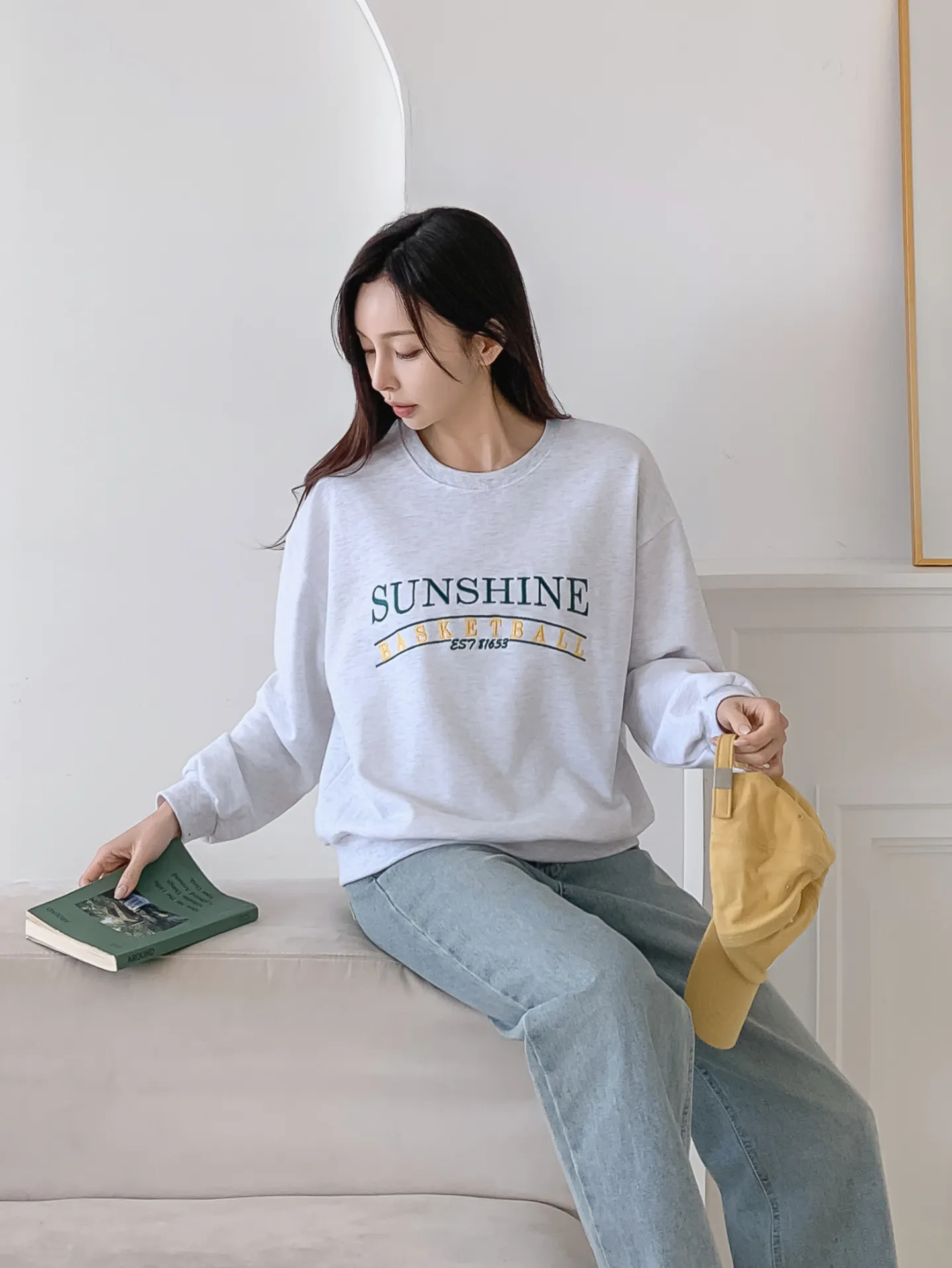 ボクシー長袖ドロップショルダー無地スウェット