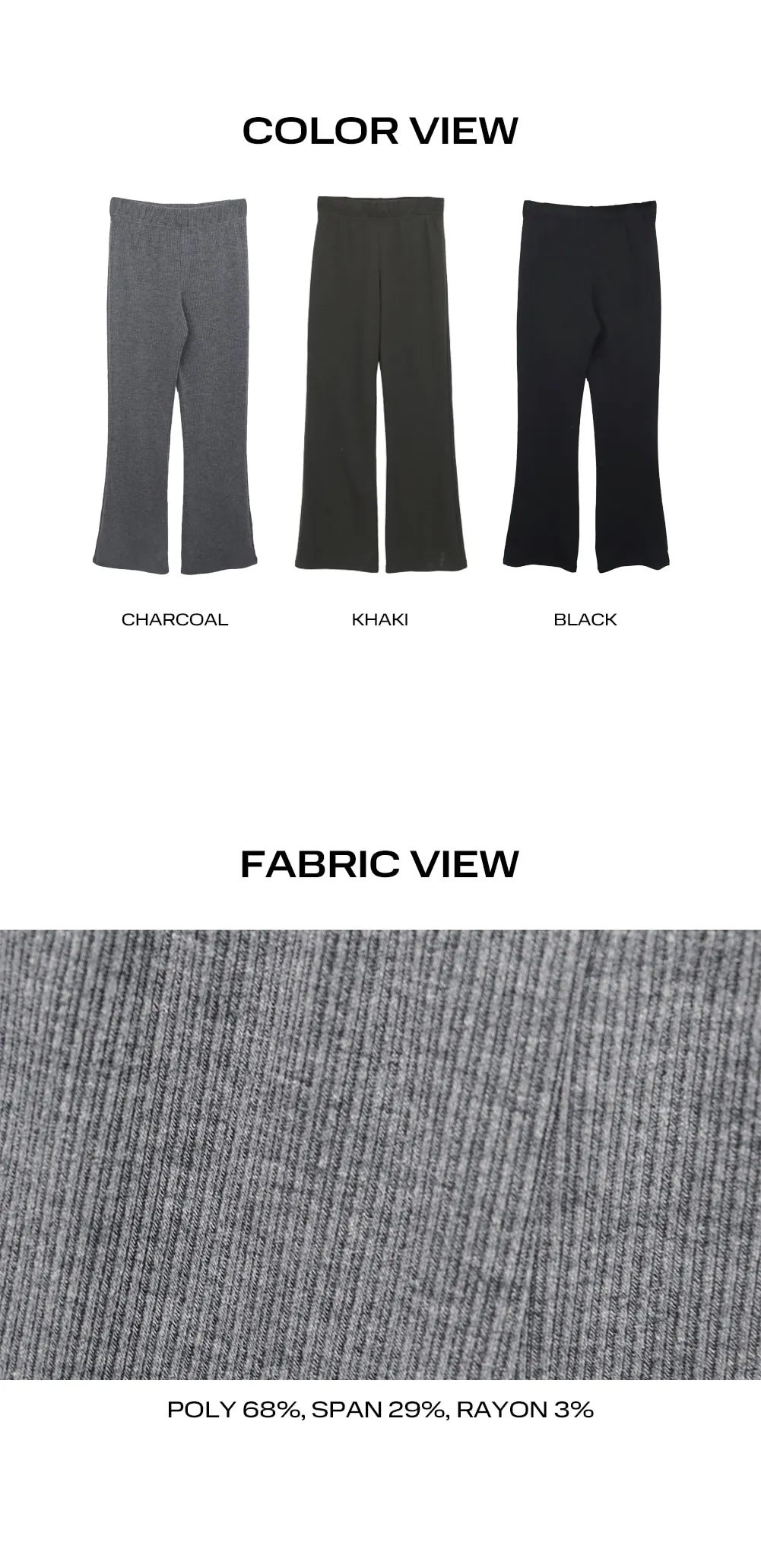 | Size | ウエスト | ヒップ | 裾幅 | わたり | 股上 | 着丈 |