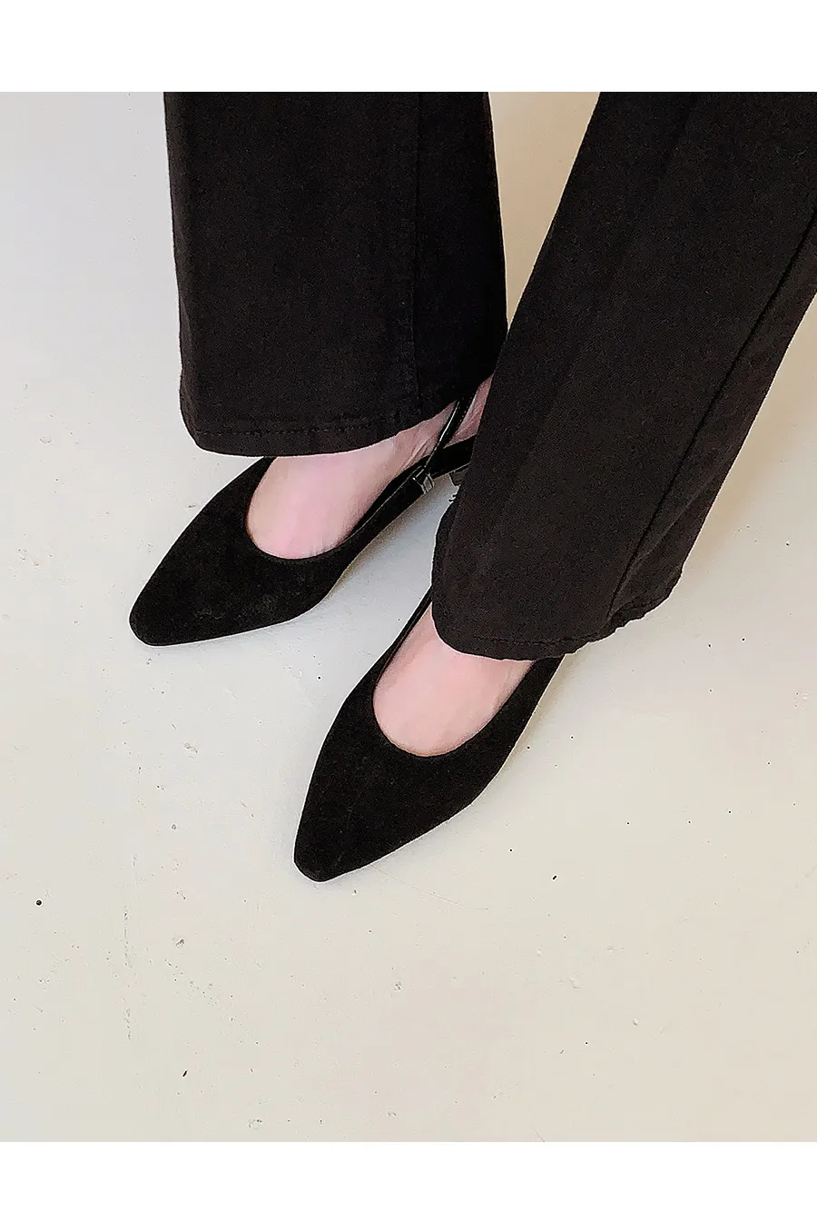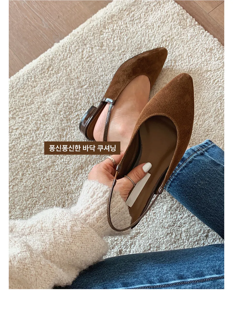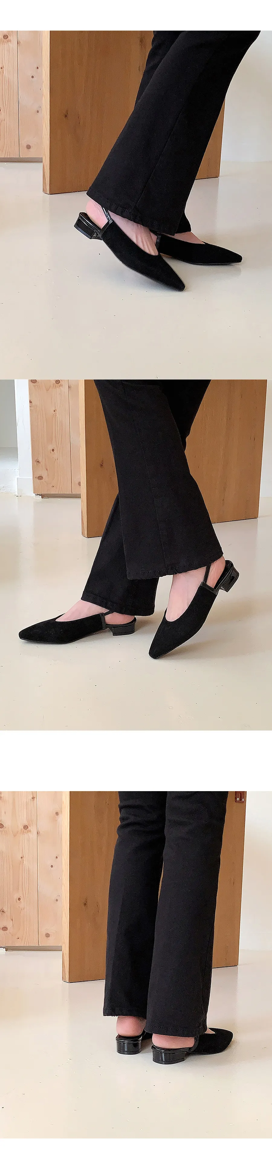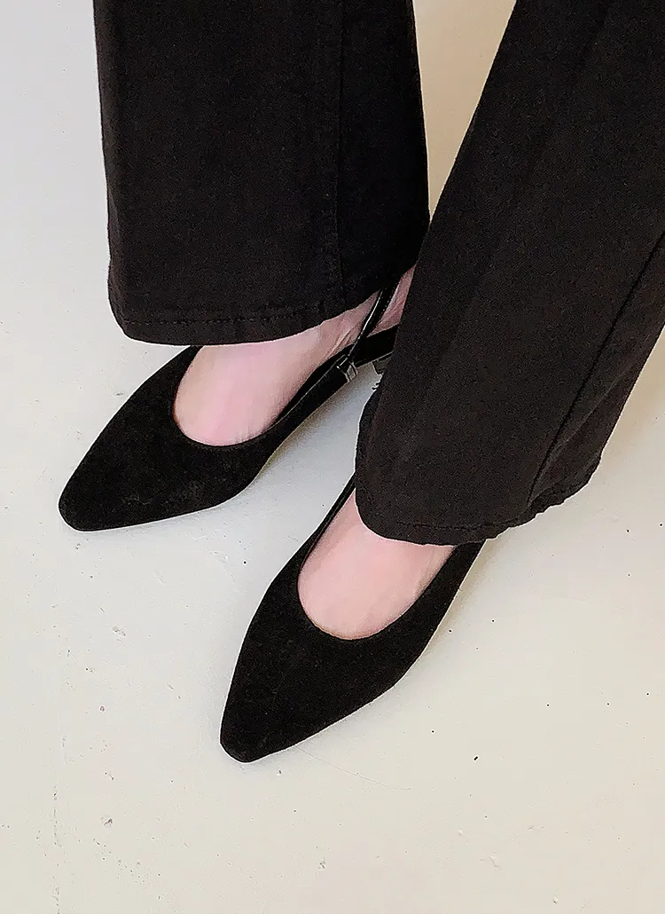 レザー調バックルスティレットヒールフラットシューズ