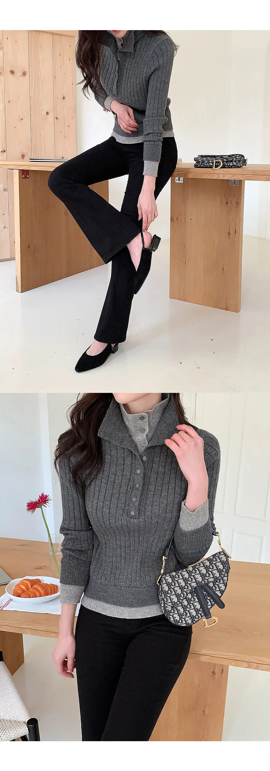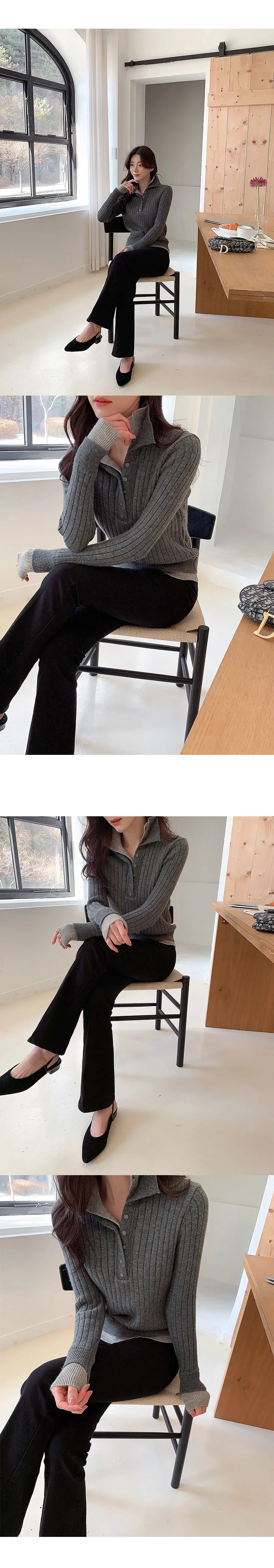 レイヤード風カラー配色ニット