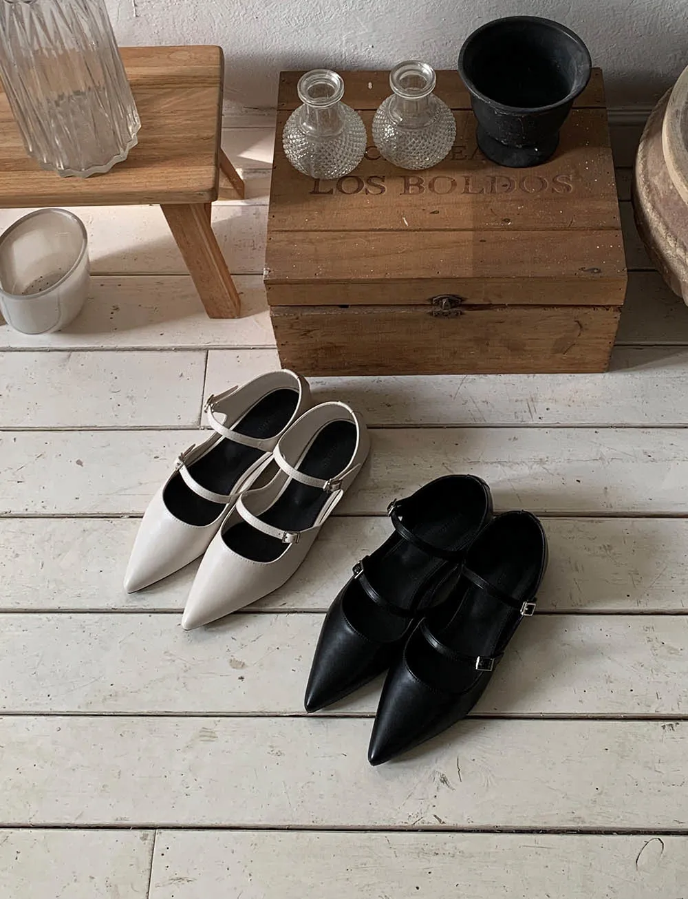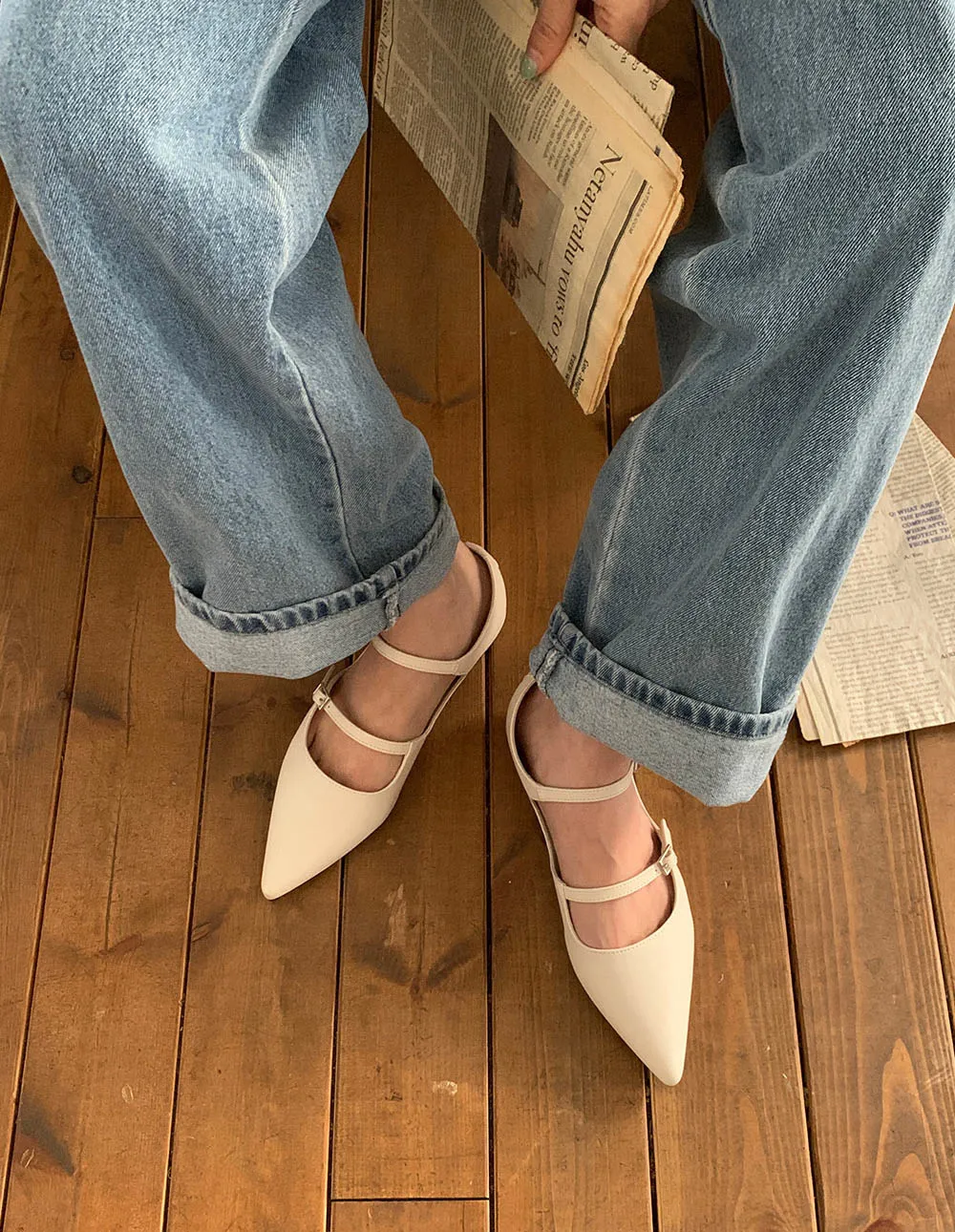 レザー調スティレットヒールバックルフラットシューズ・S1956009