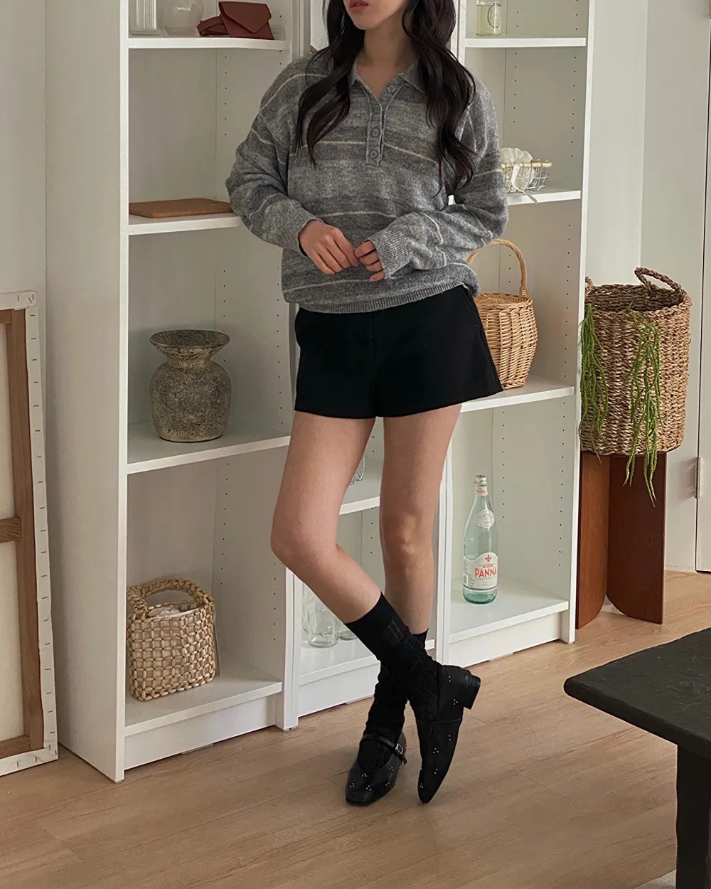 スタッズバックルドットフラットシューズ・S1956016