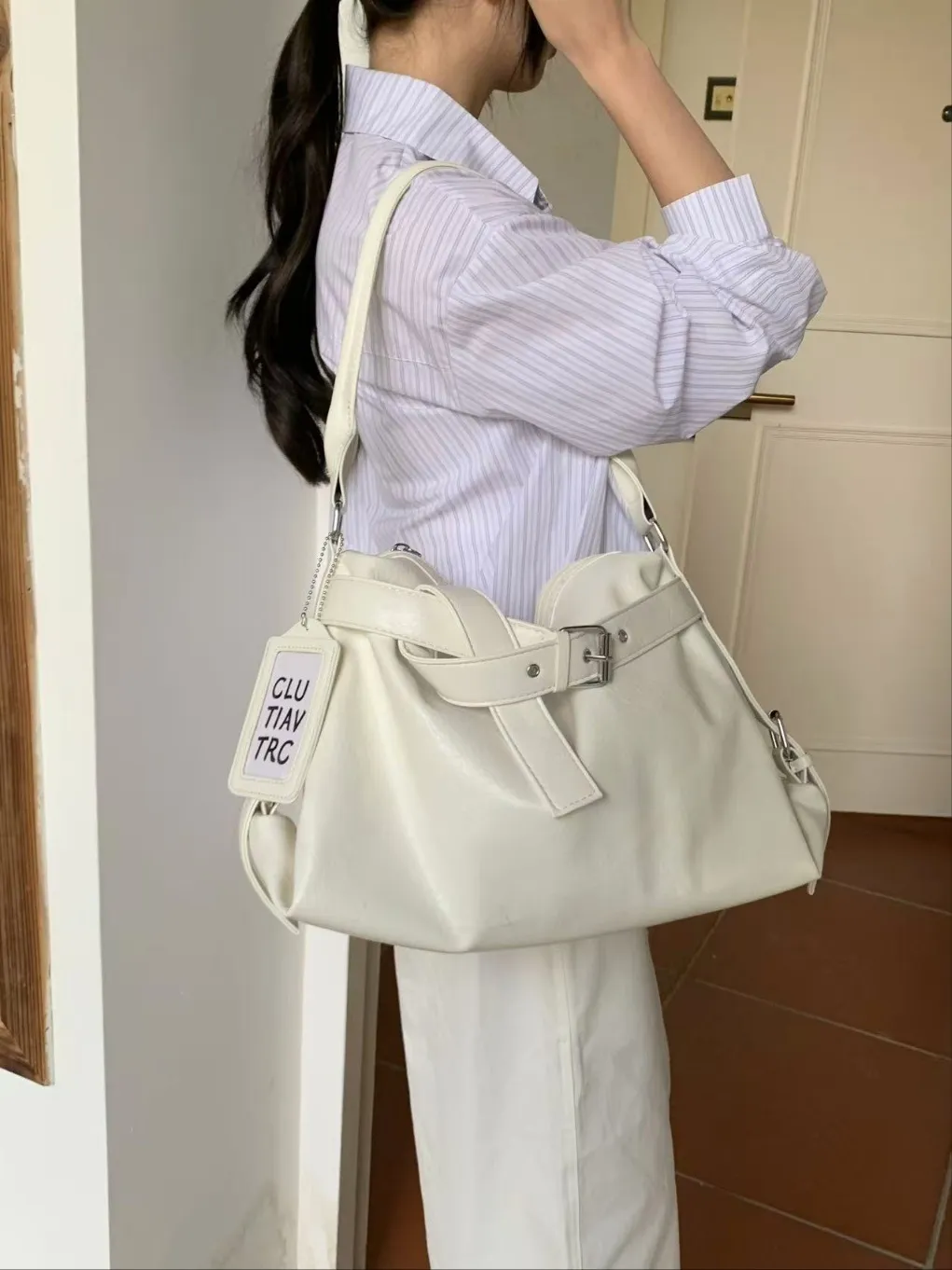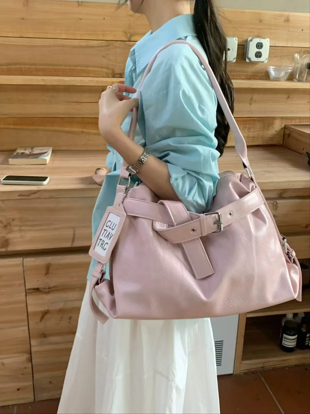レザー調ショルダーバッグトートバッグ2WAYストラップセット(バックルあり)