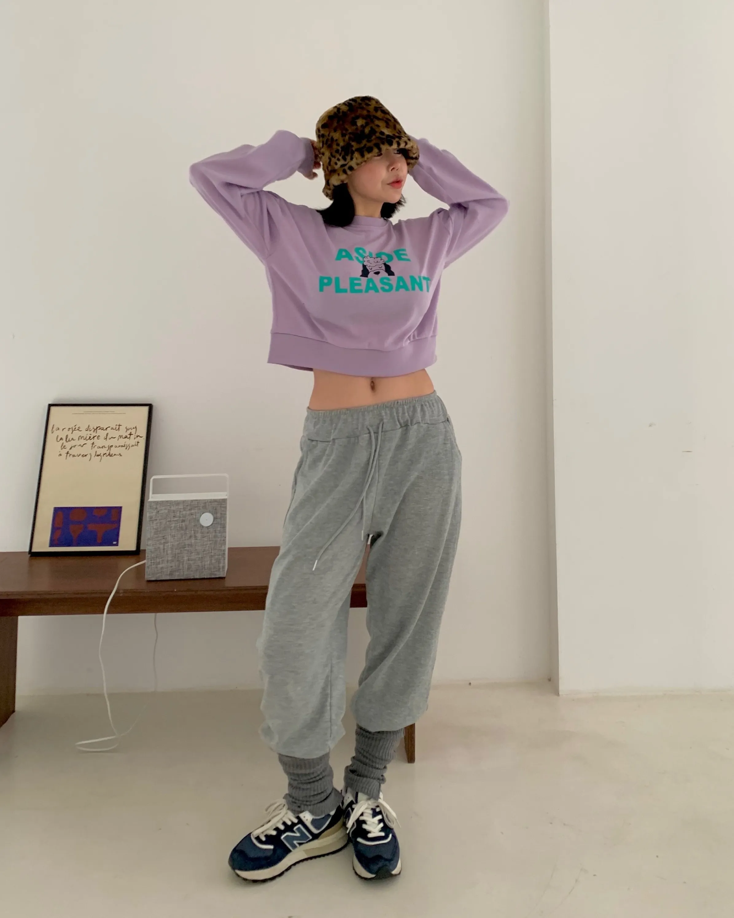 オフショルダークロップドプリントスウェット