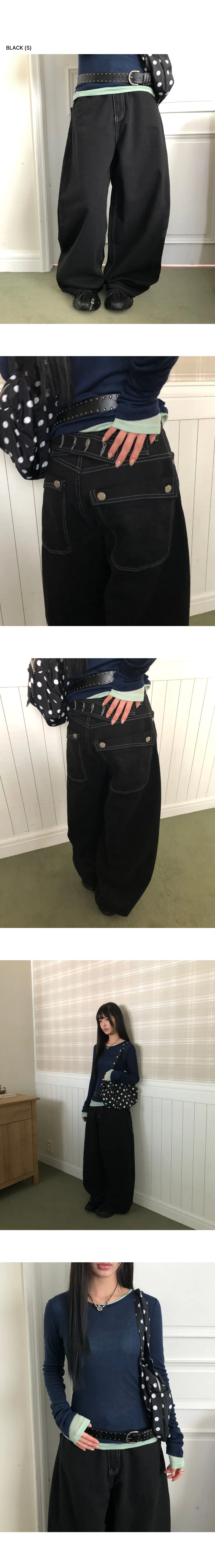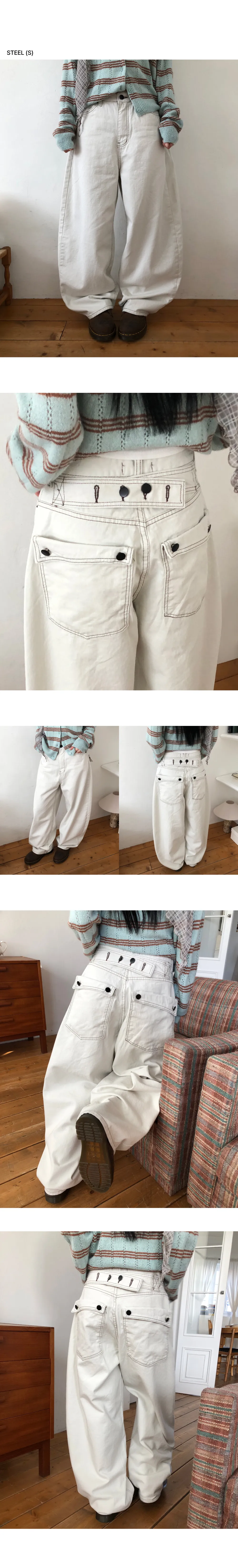 | Size | ウエスト | ヒップ | 裾幅 | わたり | 股上 | 着丈 |