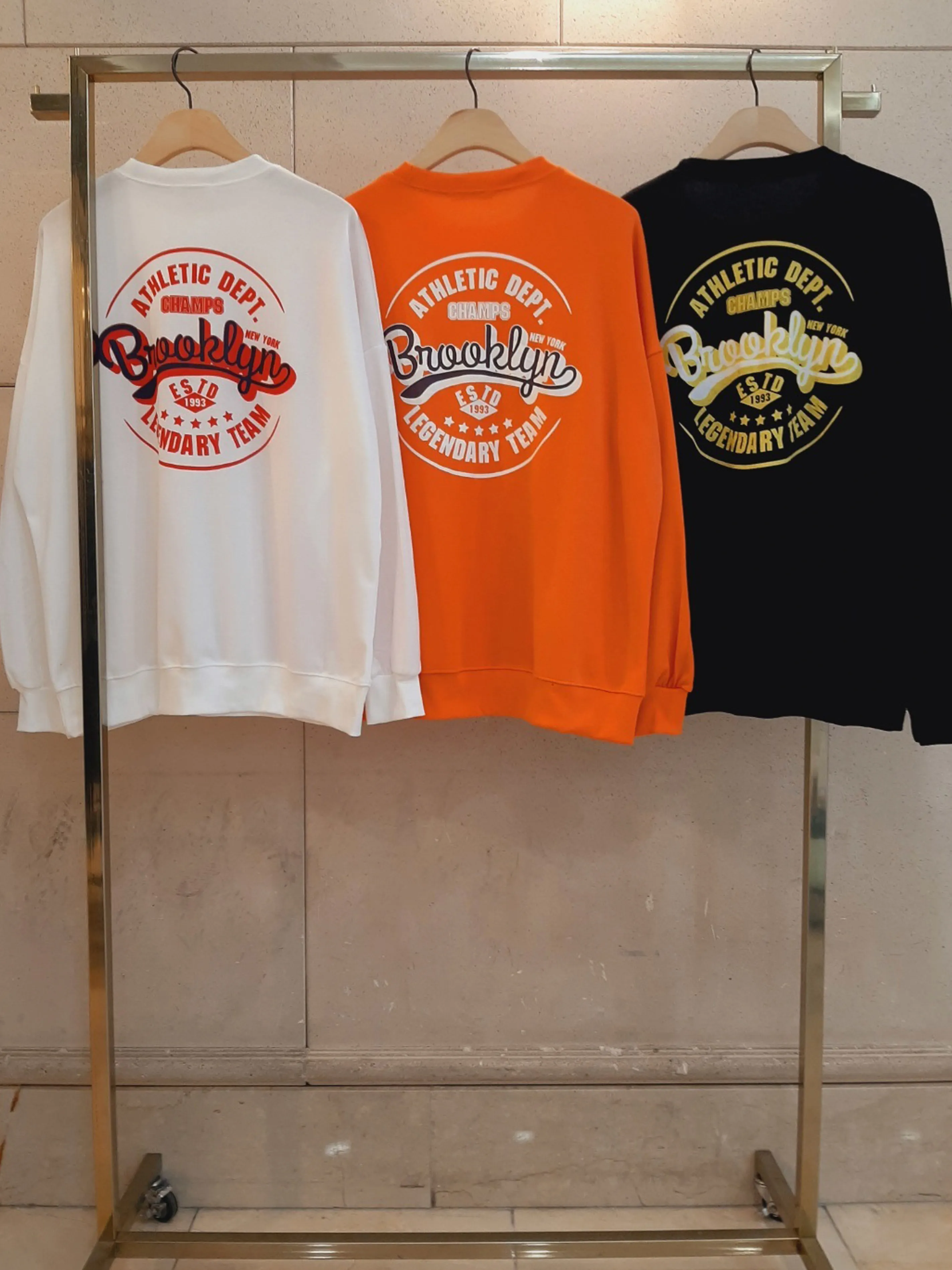 ラウンドネック長袖刺繍カラースウェット