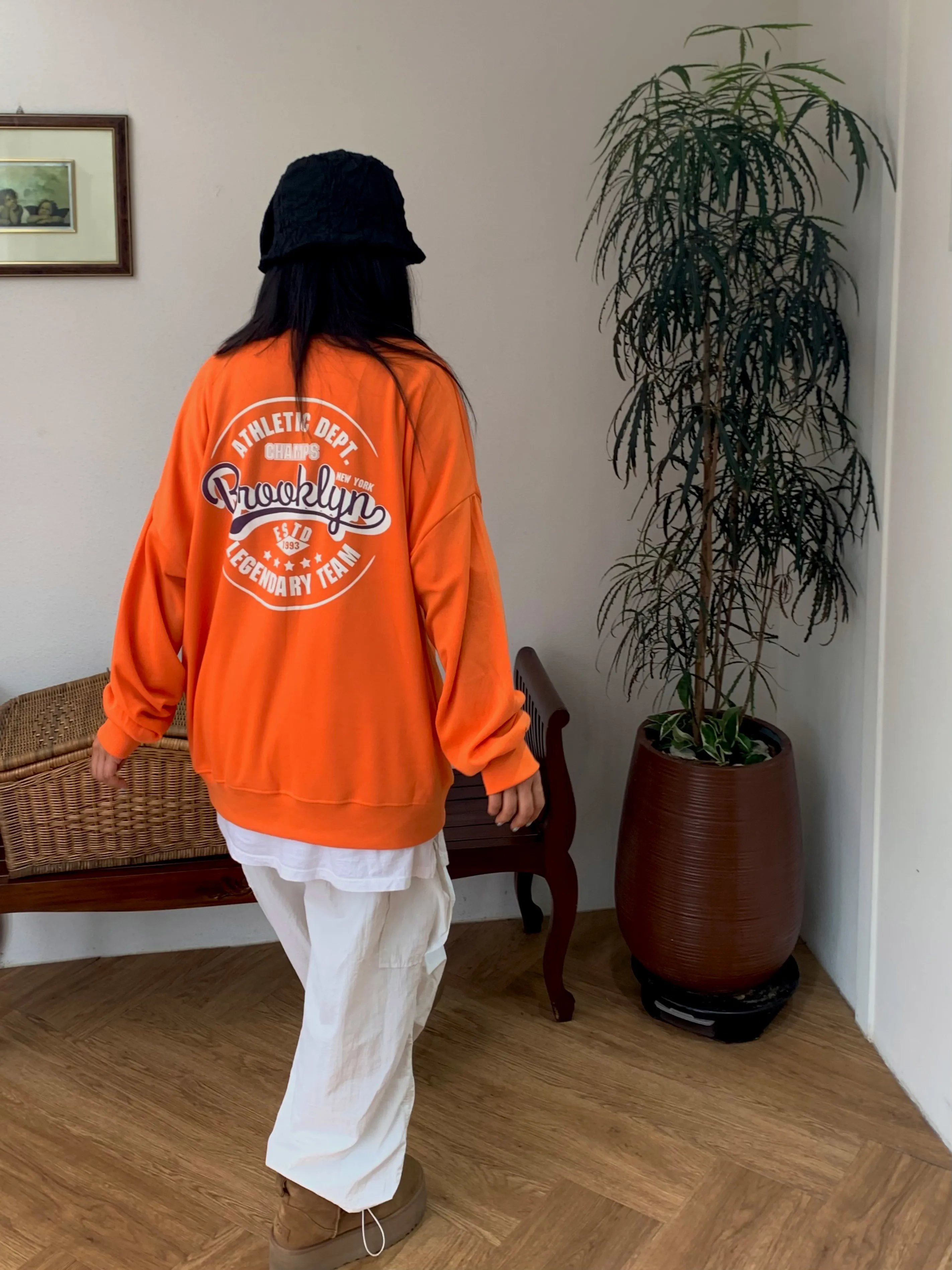 ラウンドネックルーズ長袖ロゴ両面プリントスウェット・B1956611