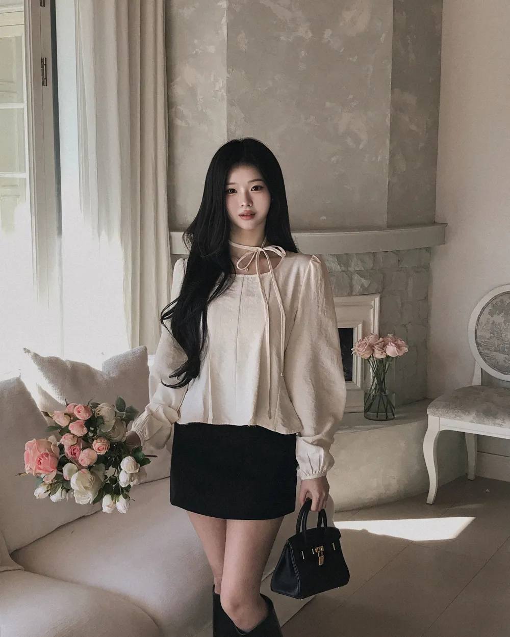 着用 : アイボリー / FREE,ブラック / FREE