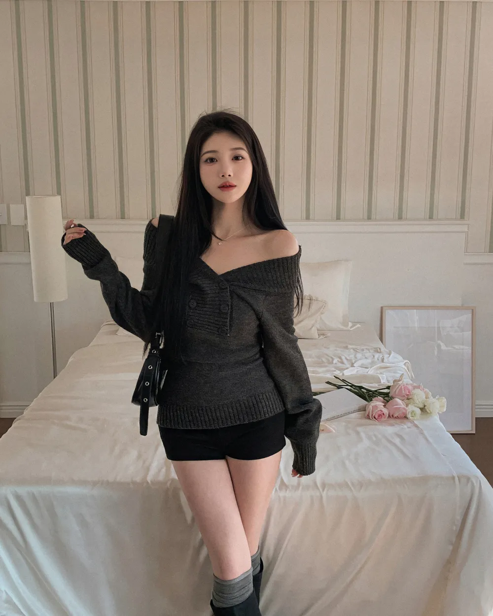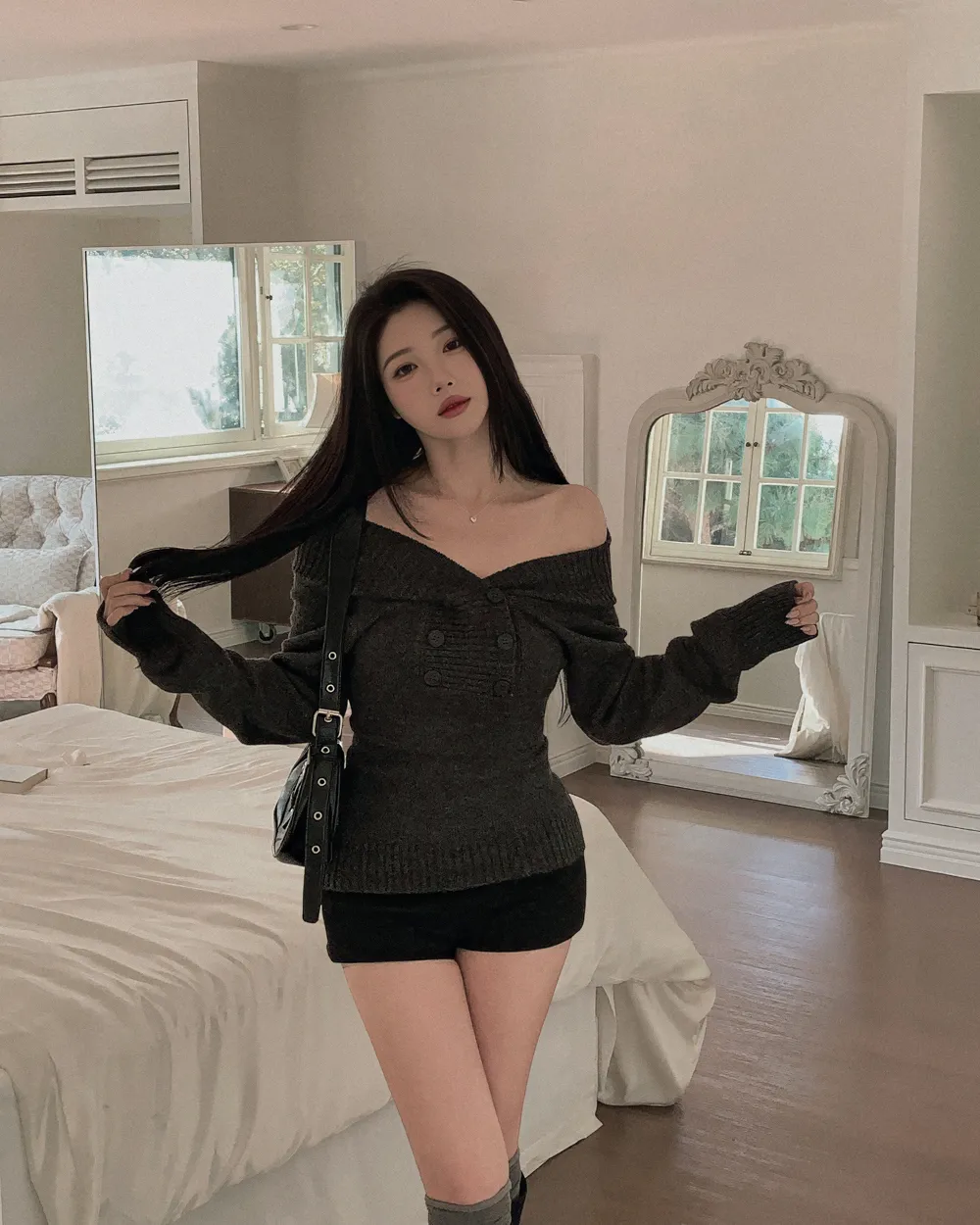 着用 : アイボリー / FREE,チャコール / FREE
