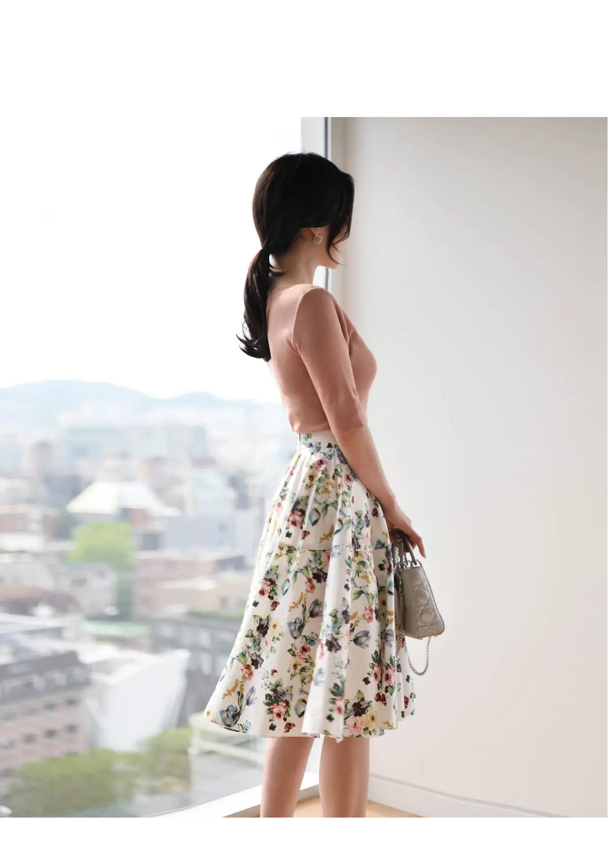 リブ長袖スリムオフショルダーニット