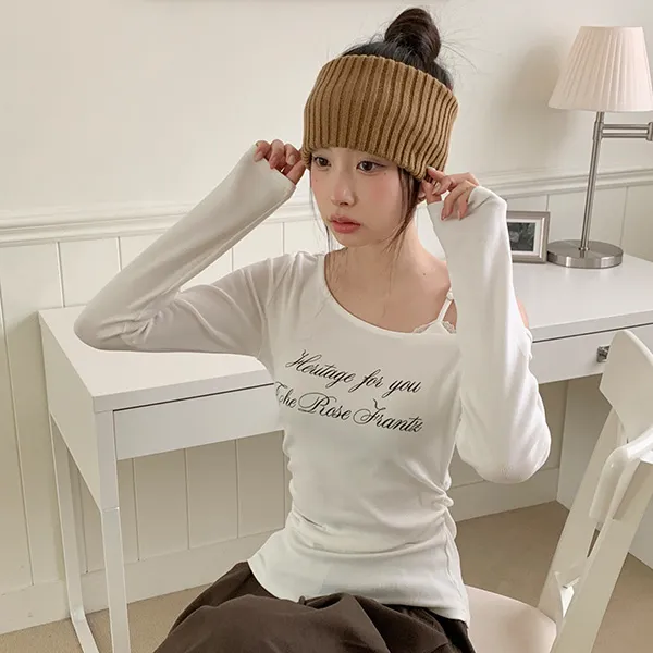 リブ長袖スリムオフショルダーニット